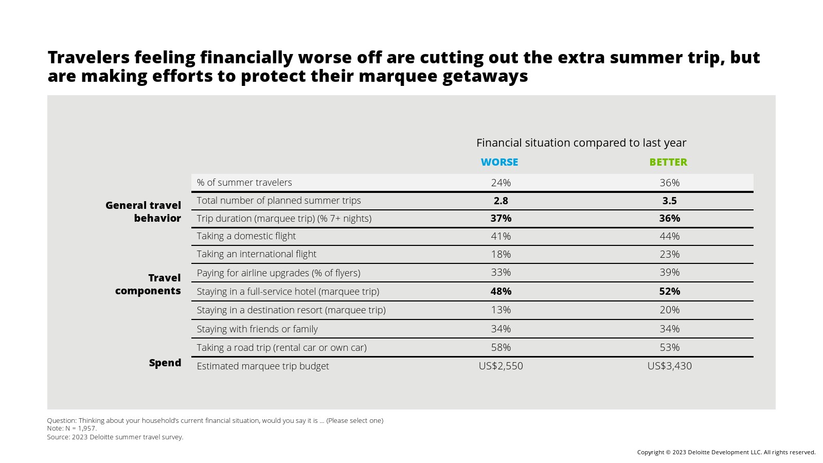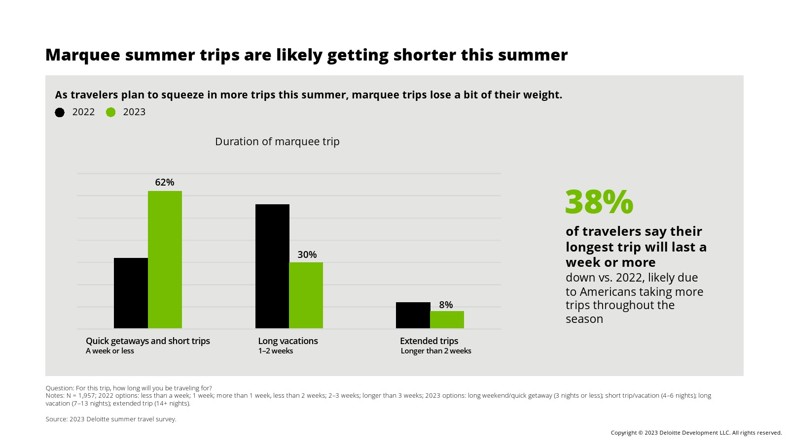 虽然旅行频率呈上升趋势,但与2022年相比,旅行花费和旅行持续时间有所下降。