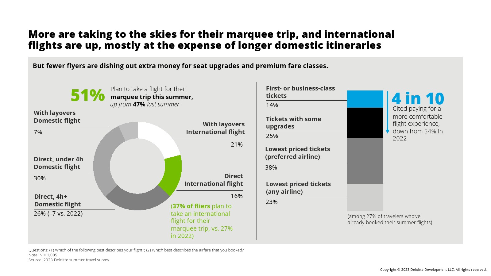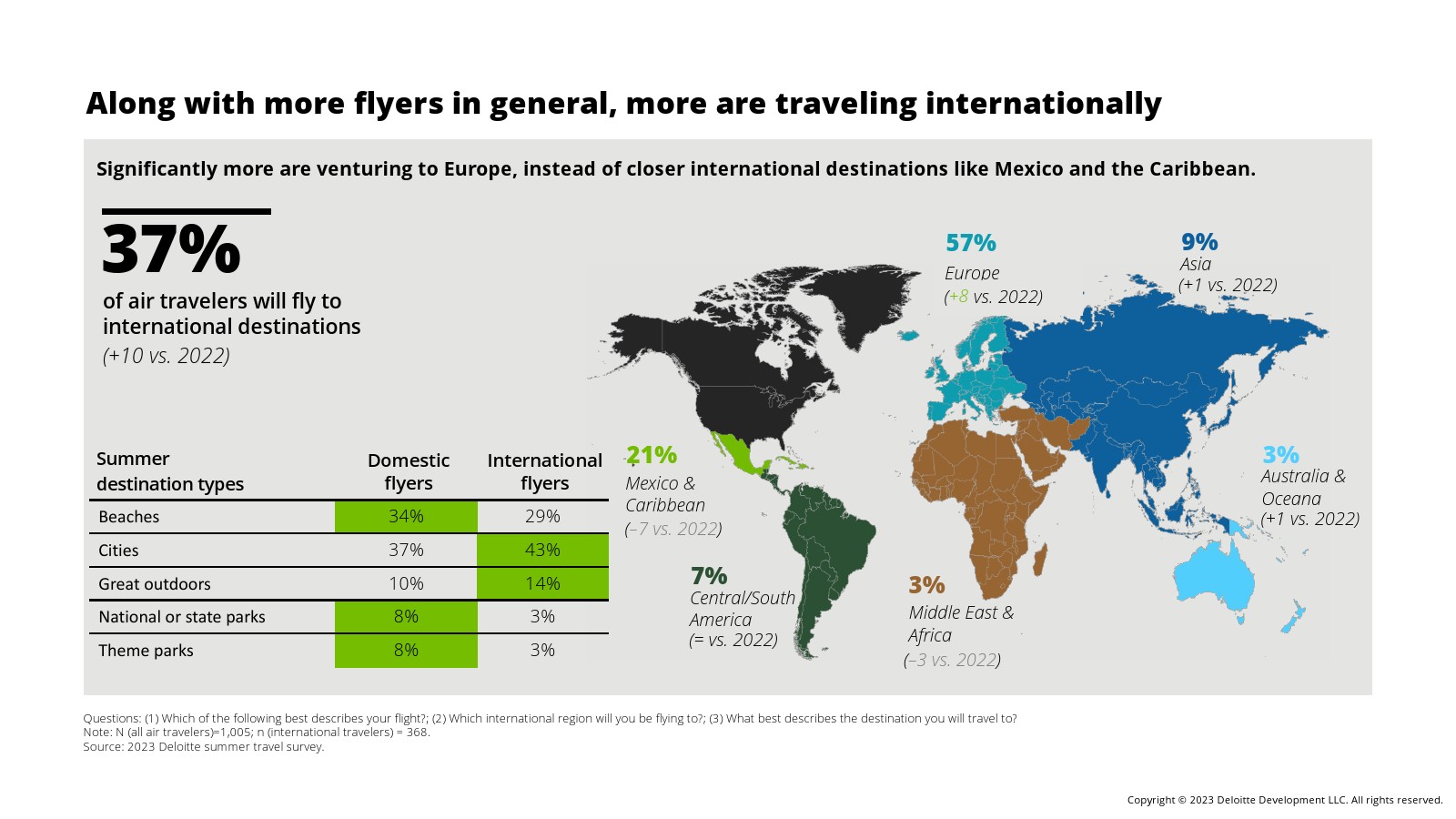 国际旅行是一个主要亮点。22%的夏季游客计划今年夏天至少乘坐一次国际航班,而2022年这一比例为14%。