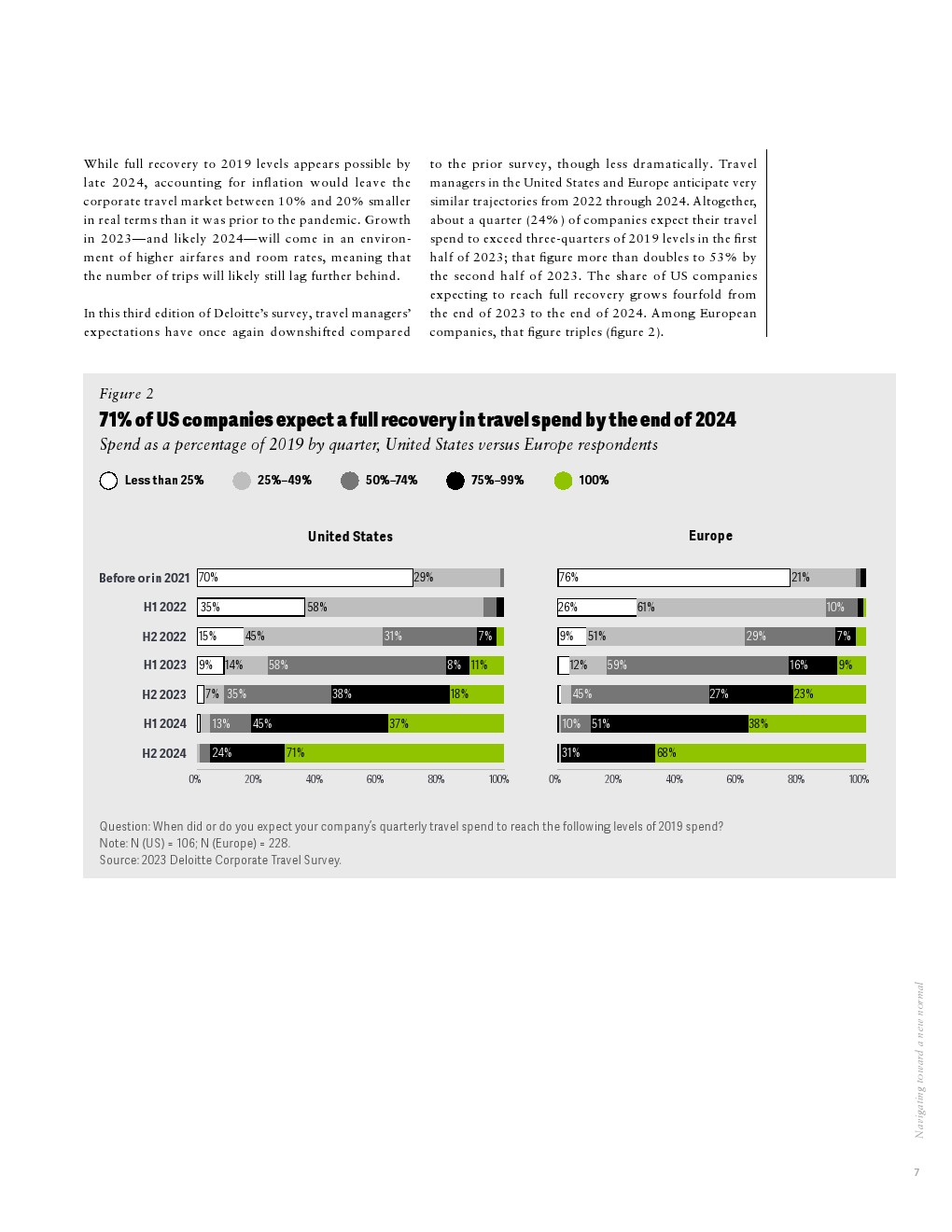 虽然到2024年底或2025年初,差旅支出才可能完全恢复到2019年的水平,但根据增长损失和通货膨胀,实际差旅支出可能会低于疫情前的水平。
