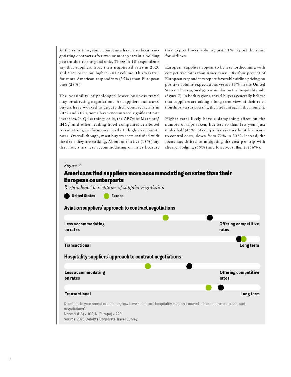 在大流行期间,许多供应商合同被冻结了两年或更长时间,并于2022年开始重新谈判。当买家带着较低的预期旅行量回到谈判桌时,一些供应商正在推动更高的价格。酒店供应商比航空公司采取了更强硬的措施,欧洲供应商比美国供应商更努力。