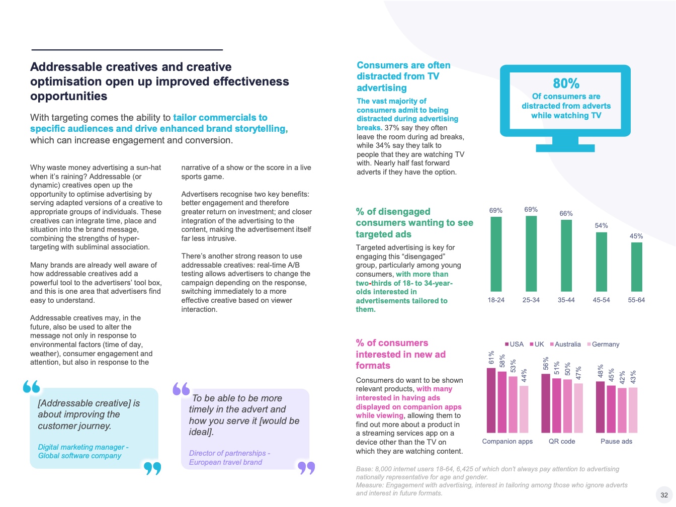 可寻址电视的新兴用例之一与创意优化有关,可以向不同的受众群体提供不同的创意版本,从而评估创意效果,或根据人口、地理或其他观众特征定制信息。