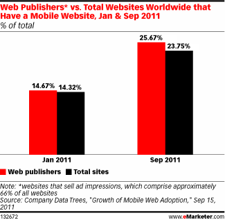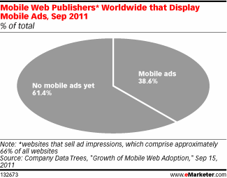 尽管越来越多的内容发布商推出手机网站,但多数仍然未采用移动广告,2011年,超过61%的站点没有投放移动广告。