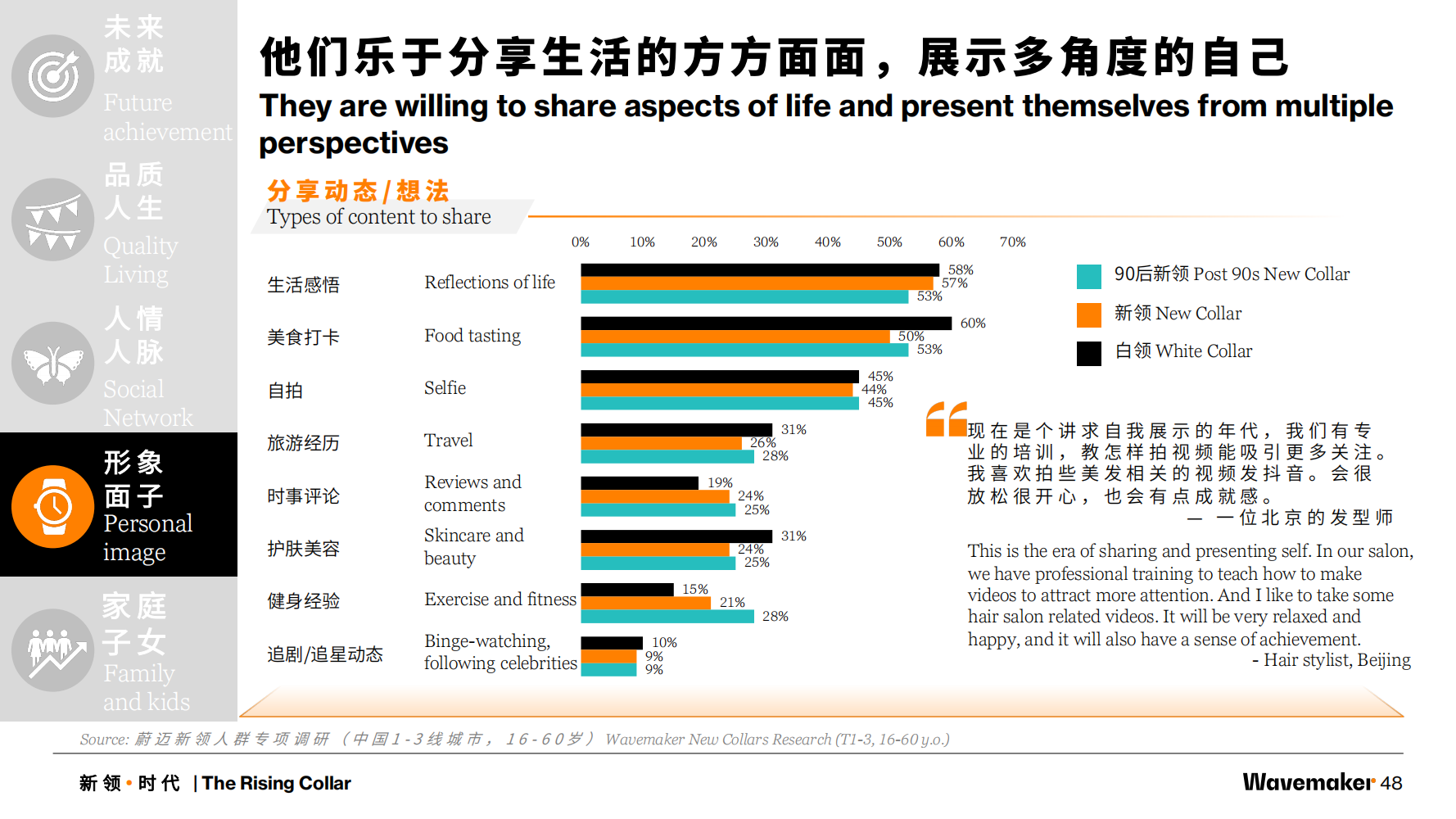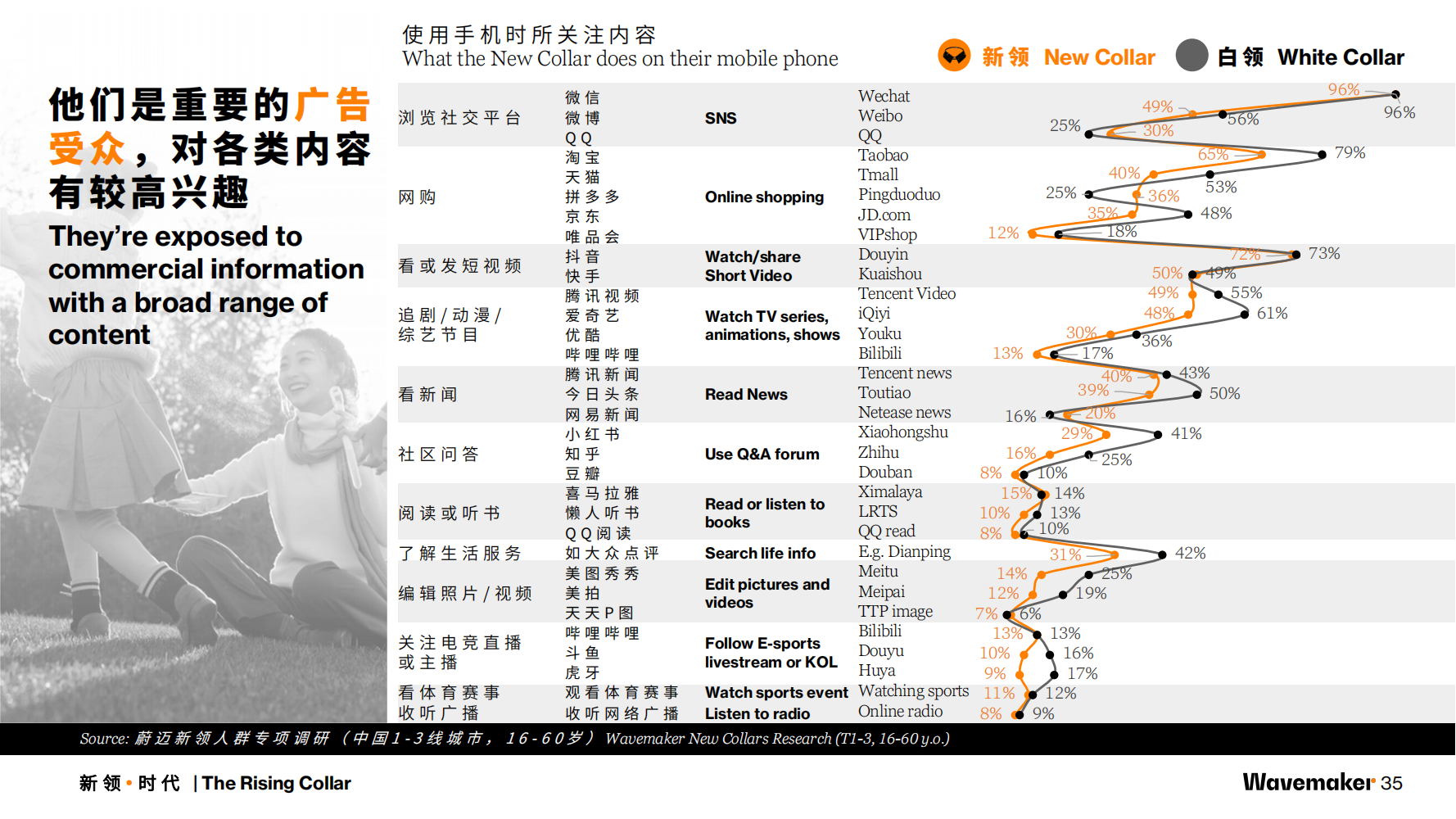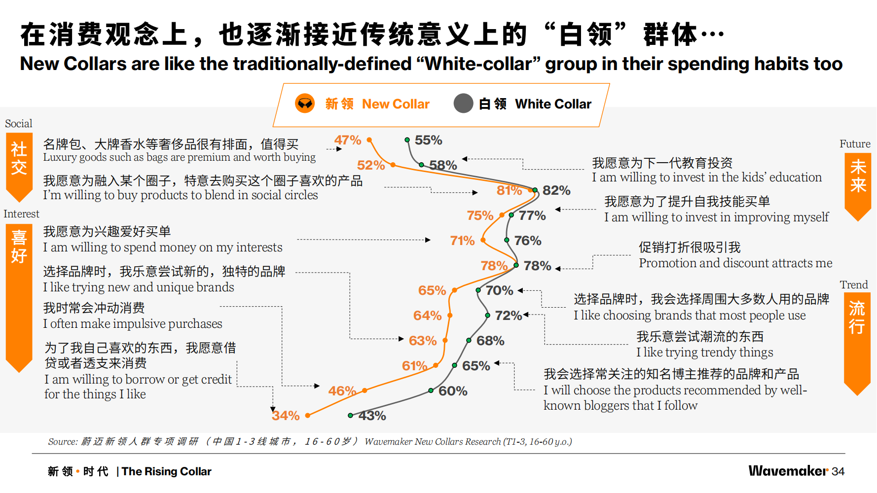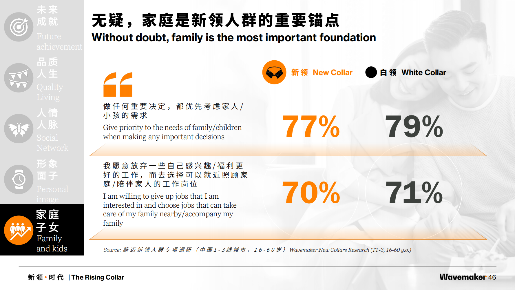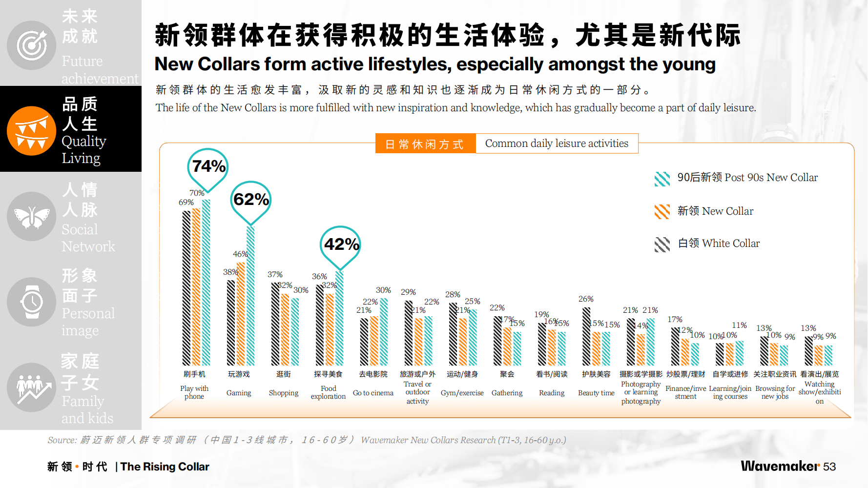 根据Wavemaker蔚迈《新领时代》报告(以下简称报告)所提供的数据,中国在 2005年至2021年间,第三产业的迁移呈55% 的增长,占就业结构的48%。而从事技能工种的人才,在2021年底也达到了总就业人口的1/4,超了2亿。人社部更预测,新技术工种的“新领”群体将在2025年达到百万级的规模。