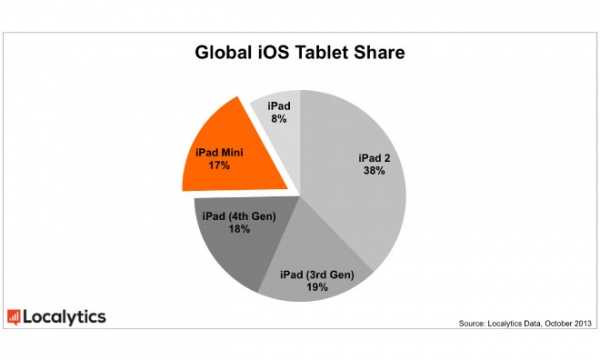 与此同时,iPad 2仍然是苹果公司”最流行”的平板电脑,占现役设备中的近4成(38%),甚至多于最新的iPad 4(18%)和iPad Mini(17%)之和。