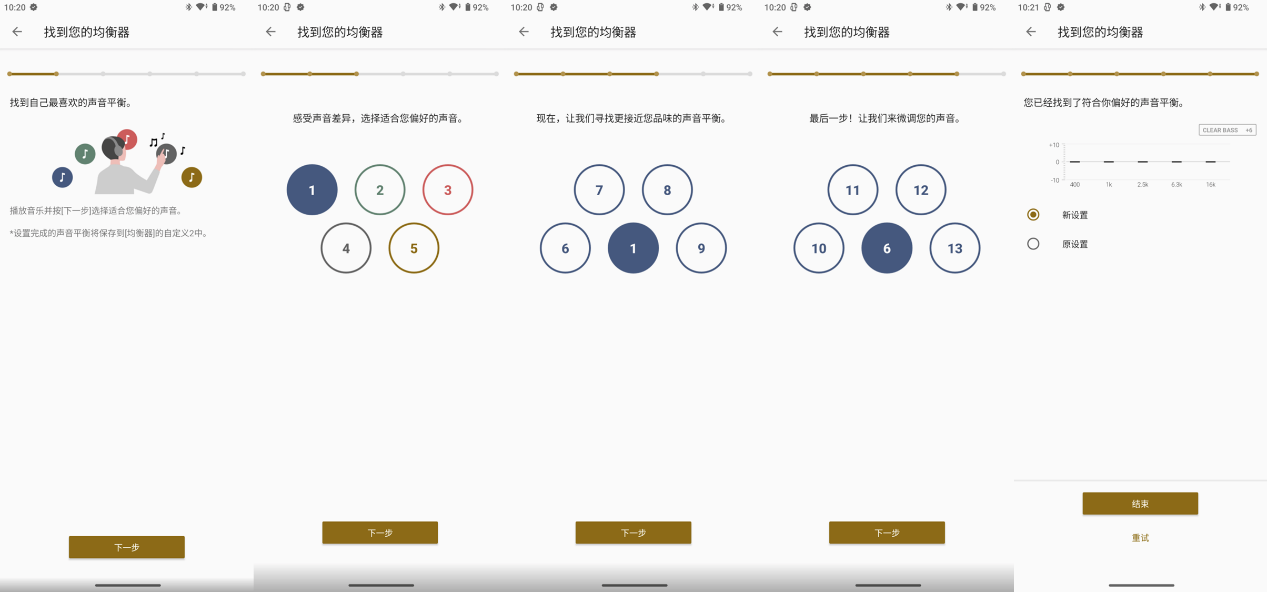 索尼降噪豆5搭载个性化智能均衡器,方便用户轻松找到自己喜欢的声音平衡设置(app中相关画面示意图)