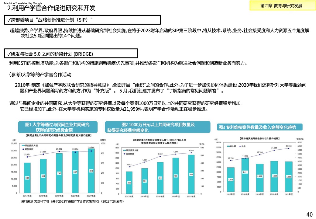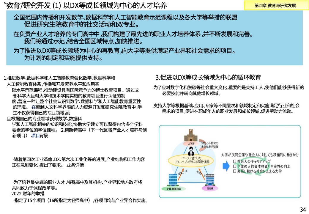 此外,根据日本第六次科学技术和创新基本计划提出以未来目标为导向,推导出解决方案,并据此制定政策,通过创新推动社会变革。日本正在大力推动创新型人工智能、大数据、物联网、材料、光学/量子技术、环境能源等对未来社会至关重要的关键前沿技术的研发。