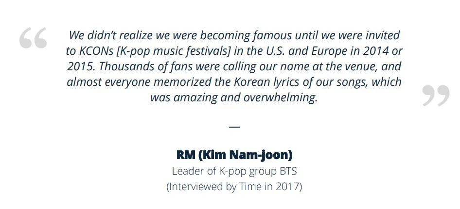 本报告深入探讨了K-pop产业及其粉丝。在概述了国内音乐市场,特别是K-pop之后,本报告将介绍该行业的主要公司和艺人,以及培养这些艺人的基本练习生制度。本报告将进一步研究粉丝文化及其与消费行为的关系,然后扩展到对韩流这一更大现象的探讨,韩流描述了韩国流行文化和娱乐在全球范围内的日益流行,重点关注其作为品牌的功能及其对韩国形象的影响。