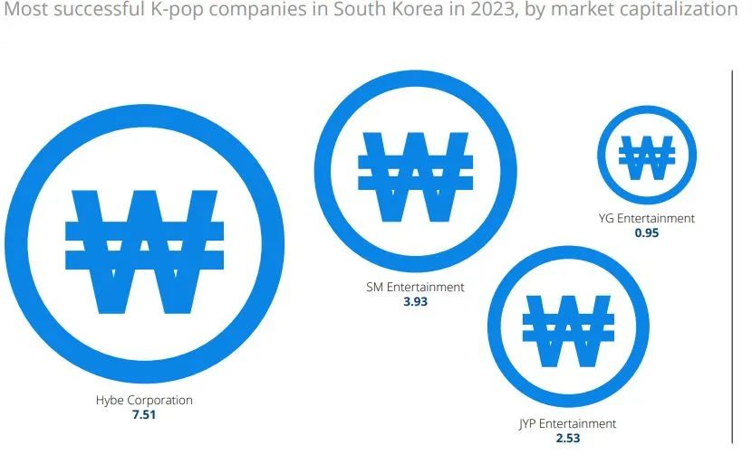 按市值计算,2023年韩国最成功的K-pop公司。数据来源:Statista.com