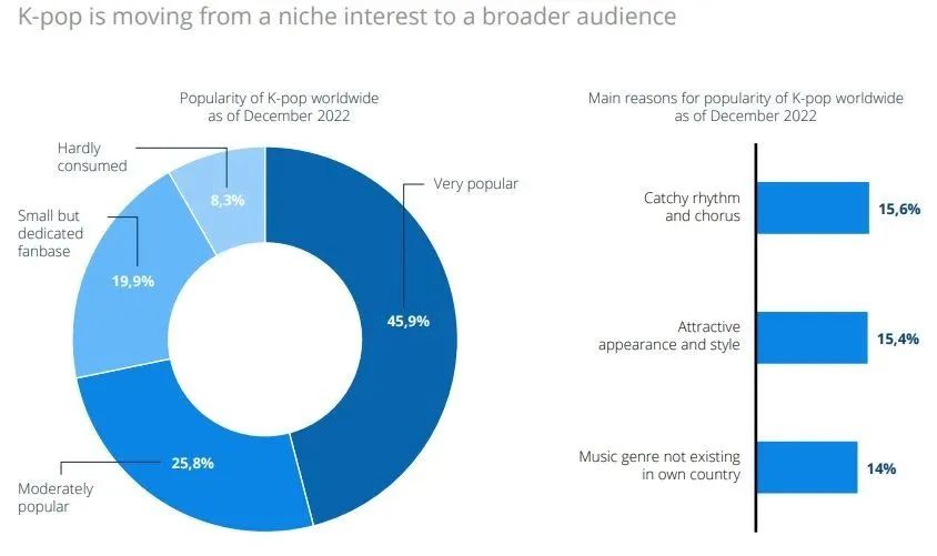 朗朗上口的节奏和吸引人的偶像助长了全球人气。数据来源:Statista.com