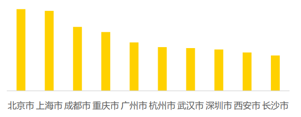 密室行业形成京、沪、川三足鼎立之势。从城市维度看,美团平台数据显示,截止2022年底,北京、上海密室数量位列第一和第二位,成都、重庆紧随其后,第五名至第十名分别为广州、杭州、武汉、深圳、西安、长沙。一线城市广州和深圳位列第五和第七(见图5)。一线城市虽然人口基数大、消费能力强,但是密室经营面积大、租金高的问题可能是导致广州、深圳密室数量排名略有落后的原因之一。相比一线城市,新一线城市成都、重庆工作和生活压力都相对小很多,而且经济水平也比较高,第三产业较为发达,房租水平也相对较低,所以川渝地区密室行业发展较为迅速。从美团平台商家数量、订单量来看,我国密室形成了北京、上海、川渝(重庆+成都)三足鼎立之势。
