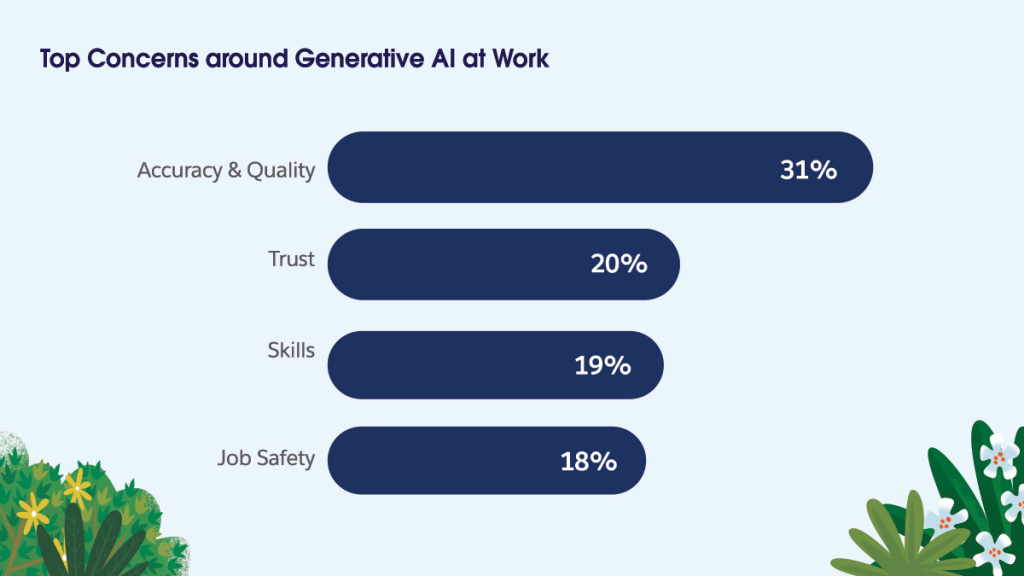 营销人员表示,准确性和质量是他们最关心的问题,比如要在工作中成功使用生成式人工智能,需要可信的客户数据和人工监督