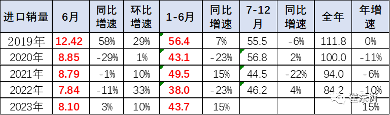 2023年1-6月进口车的销量44万台,同比2022年增15%,由于低基数的促进,今年进口车零售较强。