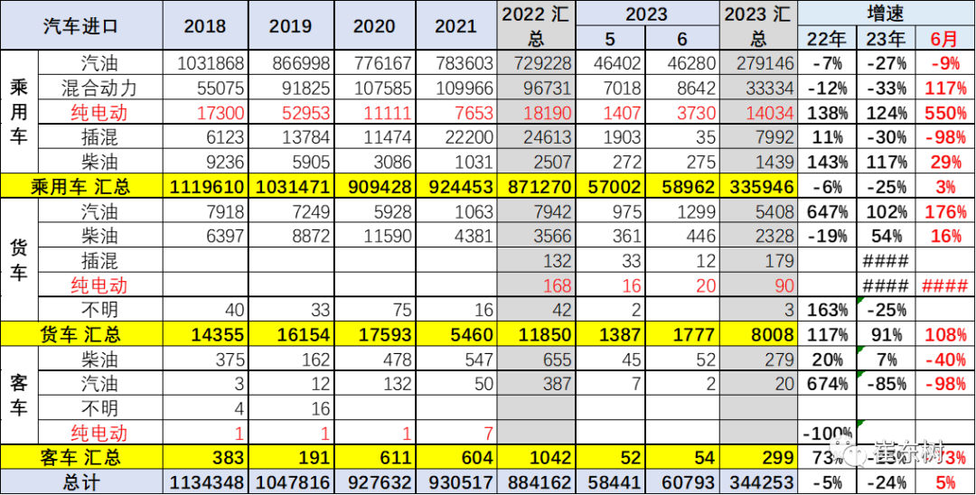 乘用车的传统燃料进口车市场下滑较大,纯电动的乘用车进口车表现很强,柴油车也有反弹。