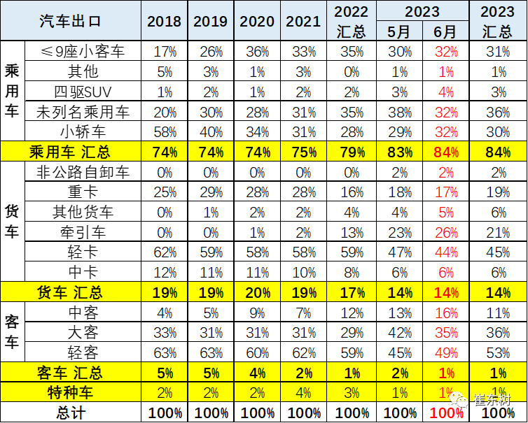货车市场出口近几年增速不强,在汽车出口市场占比表现处于持续小幅萎缩状态。