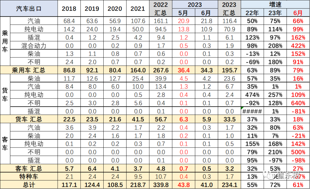 2023年的乘用车的出口增速超强于2022年增速。纯电动货车的出口很强,这是很好的表现。