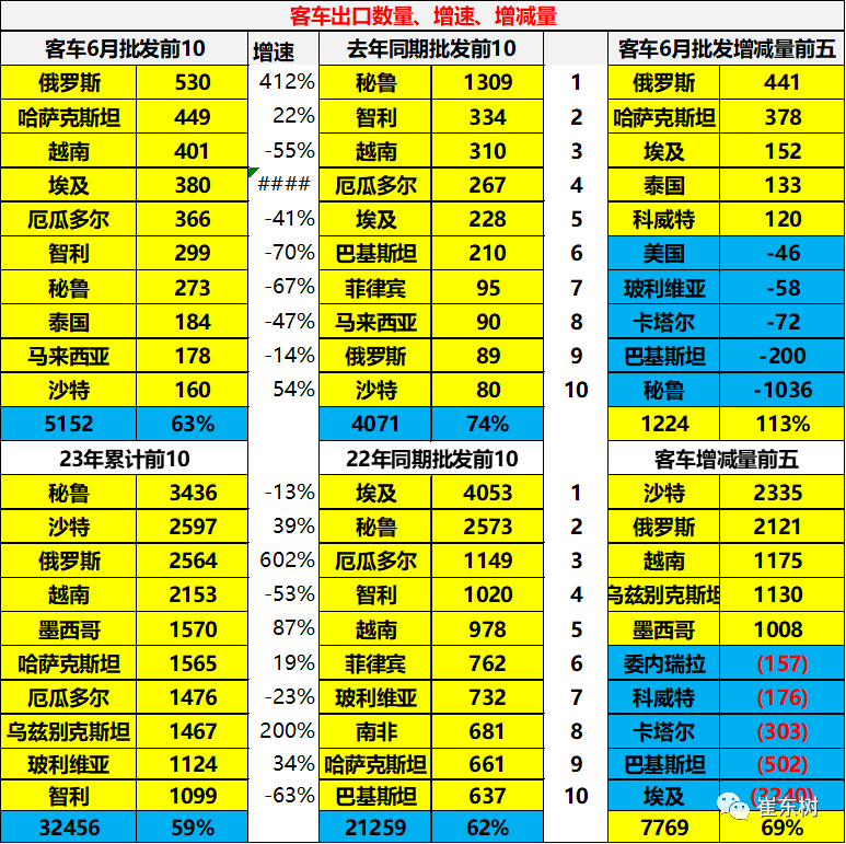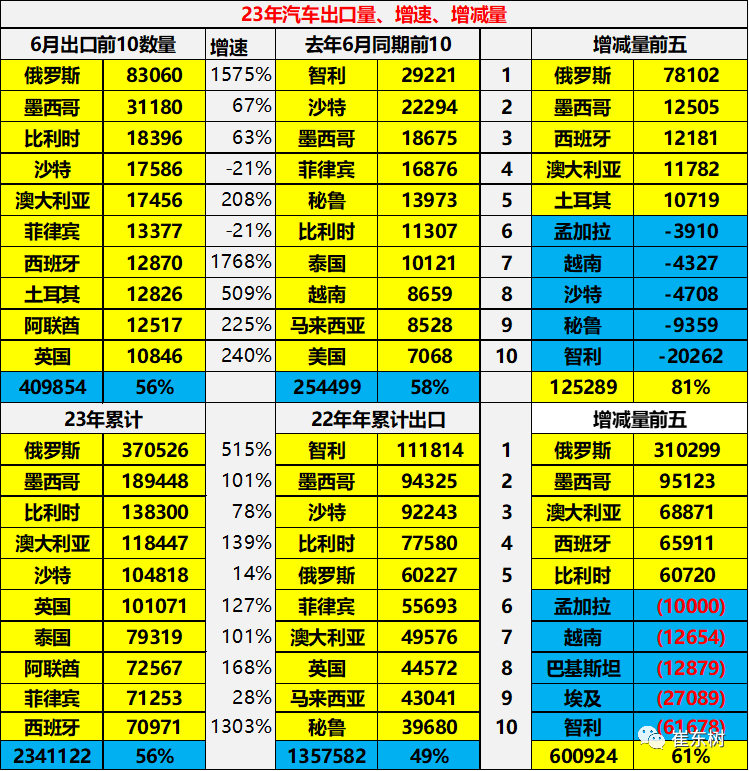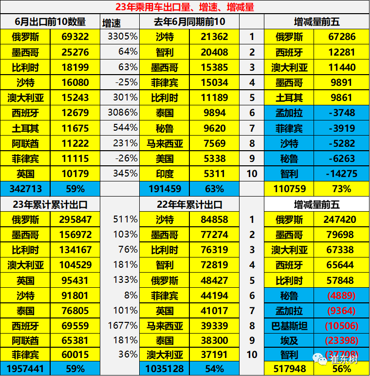 2023年1-6月份增量相对较多的是俄罗斯和欧洲和北美、亚洲的市场,俄罗斯、墨西哥、澳大利亚等都很强。