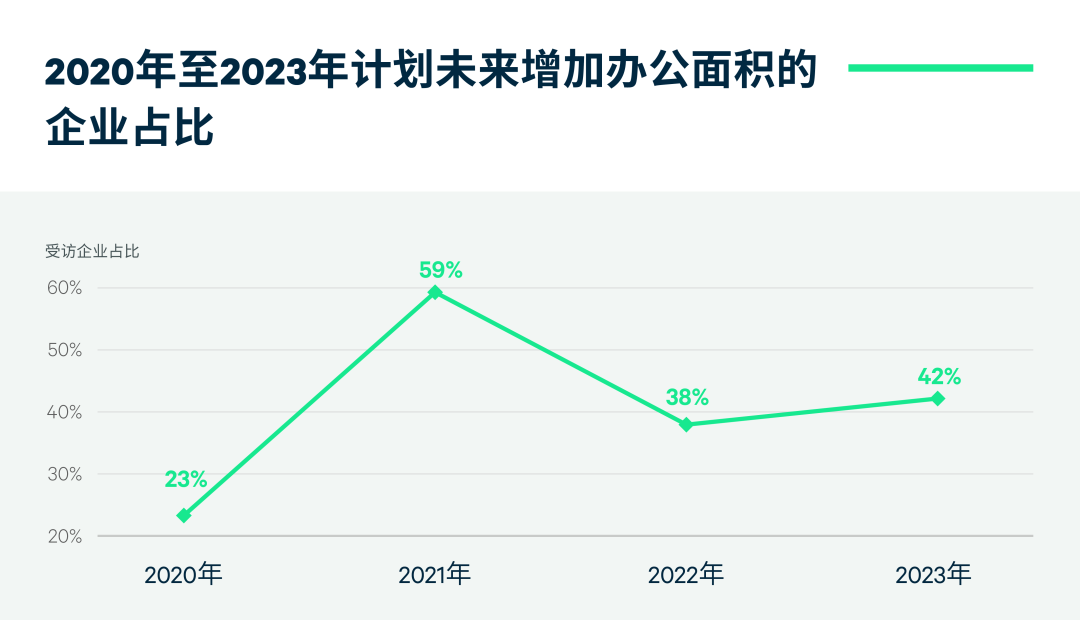 随着防控措施调整后大部分员工回归办公室,调查显示,2023年30%的企业计划增加固定工位,占比较2022年提升10个百分点。