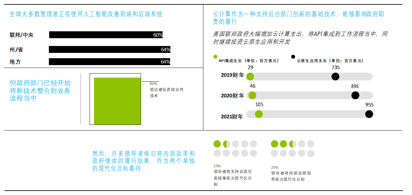 各行各业都在利用一些工具持续改进后台部门的运营效率。数据分析是一个独立的领域,云技术会议现在已经成为全球各大城市的主要议题,而自动化流程就如同数字经济发展的引擎。随着后台部门的职责和政府使命越来越多地以信息为中心,许多政府部门发现,后台部门创新不仅能提高效率,对于政府履行职能也有巨大的好处。