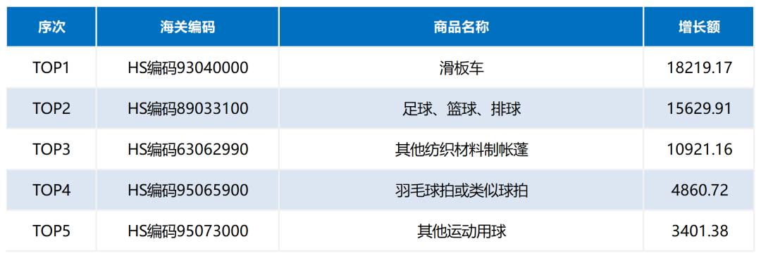 2023年1-4月增长额TOP 5(体育用品产品类目)