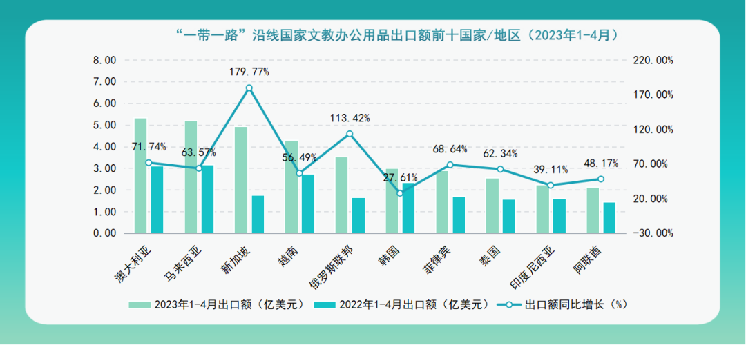 2023年1-4月“一带一路”沿线国家文教办公用品出口情况