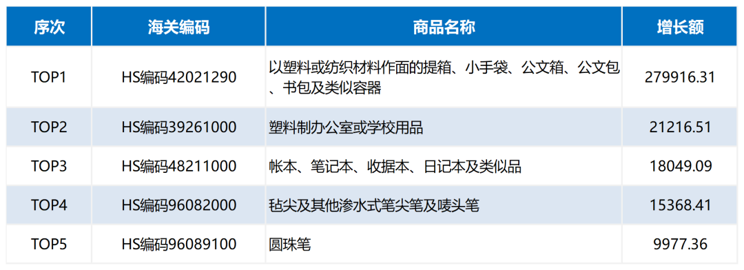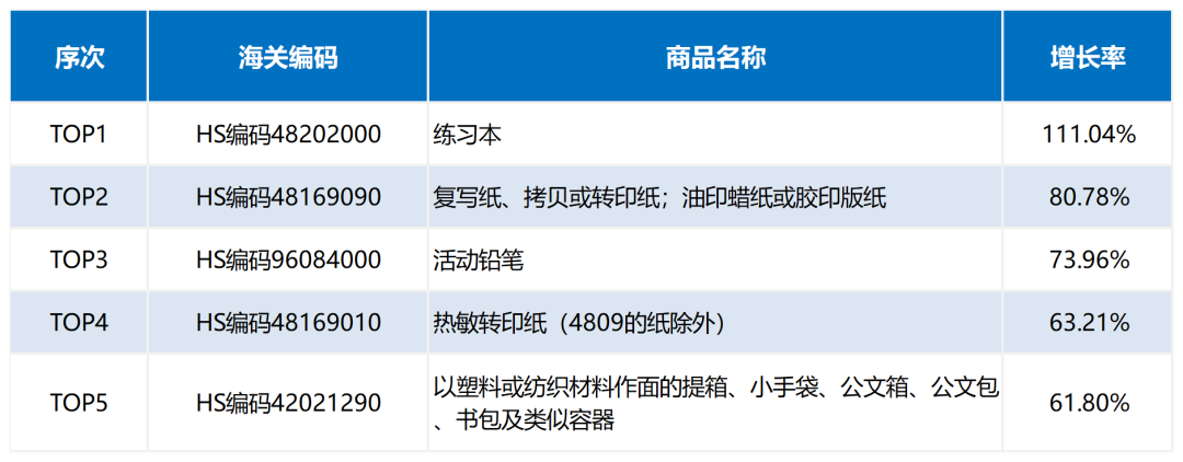 2023年1-4月出口额增长率TOP 5(文教办公用品产品类目)