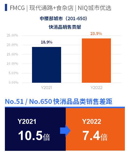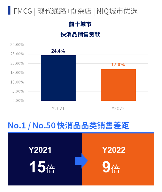 数据来源:尼尔森IQ,IntelliGeo 城市优选 快消品品类,现代通路+食杂店
