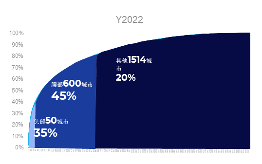 NIQ 6月发布的《2022年全国快消品品类分城市表现》报告指出,头部黄金50城的销售集中度在下降,其销售贡献从2021年的38%下降到2022年的35%。与此同时,腰部城市则不断发力,销售贡献从42%上升到45% ——即全国前80%的销售中,腰部城市的贡献比重正在增加。