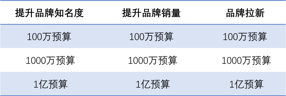 对于有限的100万预算而言,大模型的分配模式可以称得上是中规中矩,而对于品牌知名度的提升预计则缺乏切实有效的数据支撑与思考维度,而后我们将预算提升到1个亿和1000万。