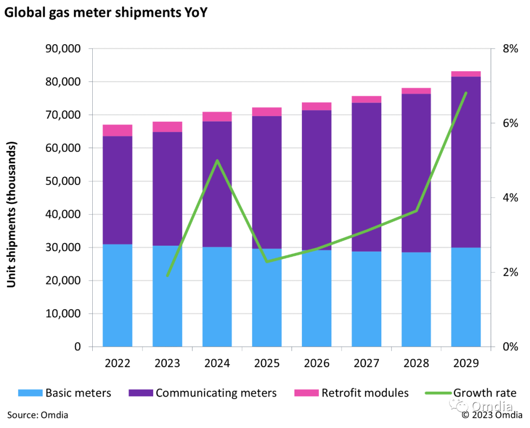 Omdia的最新预测显示,全球燃气表市场的智能化进程稳步向前。