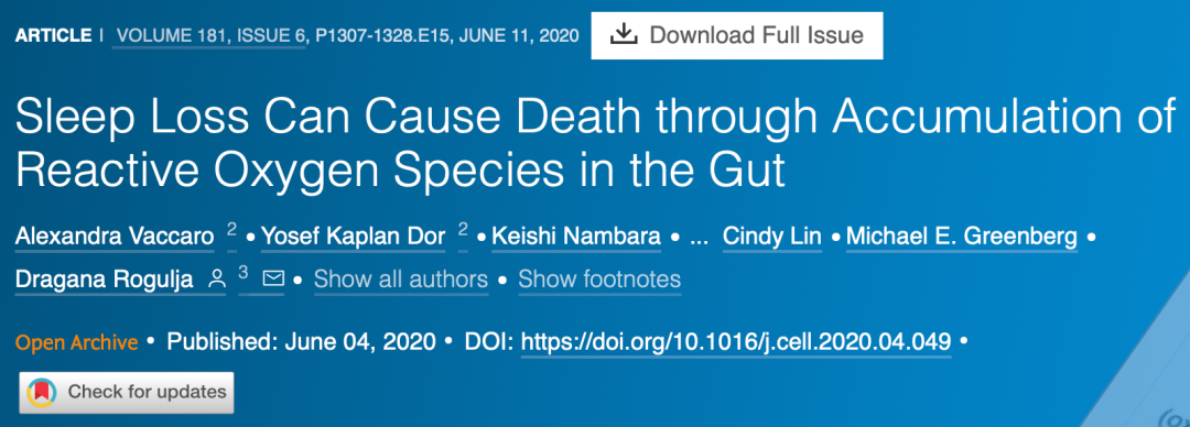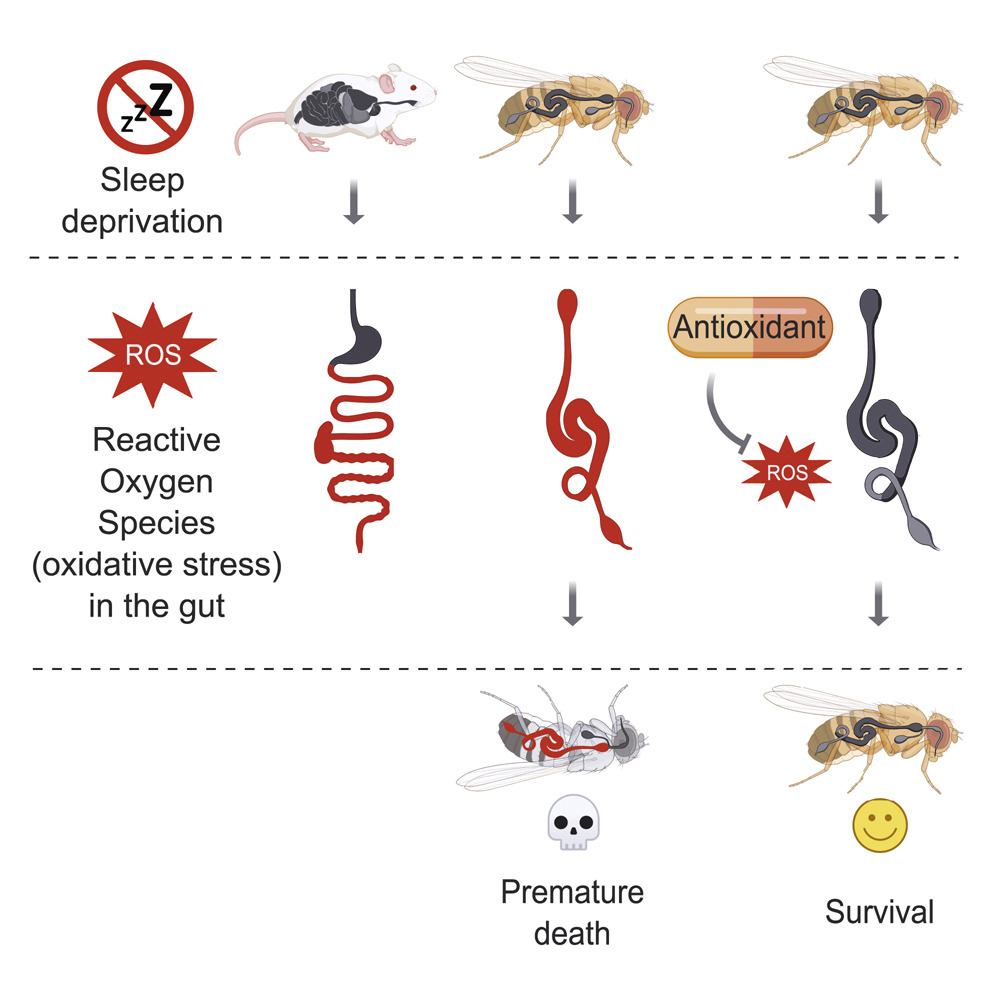 来自哈佛医学院的研究团队发现了熬夜致死的关键机制——熬夜致死的原因不在于大脑,而在于肠道。具体来说,睡眠不足能导致活性氧(ROS)在果蝇和小鼠肠道内积累,进而诱发氧化应激,最终引起机体的死亡。该研究发表在Cell上。