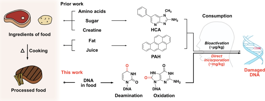 综上所述,本研究提出了一个很新颖的观点——高温烹饪对食物本身DNA损害,或会被摄食者吸收并改变其DNA,进而产生遗传风险。而该机制,与此前发现的高温产生杂环胺等小分子物质的影响是独立的。