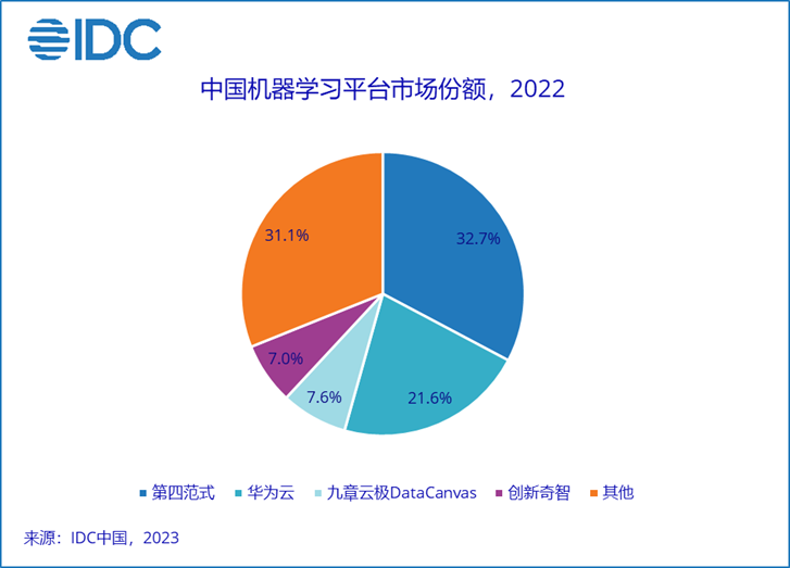 2022年机器学习开发平台市场规模达35.4亿元人民币, 相比2021年同比下降4.9%。该市场呈现出明显的头部厂商规模化效应,前5名的厂商占据69.9%的市场份额。由于机器学习开发平台的技术门槛以及落地的诸多挑战,该市场并没有呈现出百花齐放的状态。当然,随着众多初创企业入局大模型市场,未来机器学习平台市场格局有可能被重新分配。