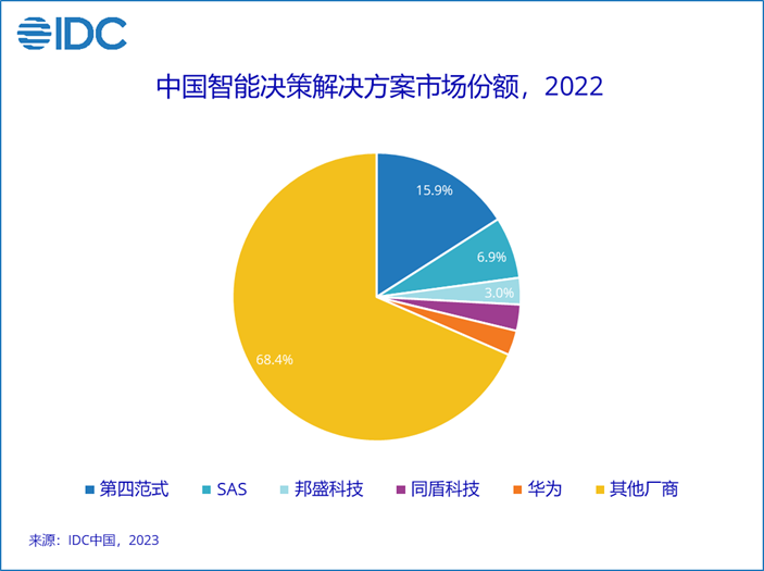 2022年,第四范式、SAS、邦盛科技、同盾科技、华为、杉数科技以及中科闻歌在激烈的市场竞争中占据了主导地位,前五厂商具体的市场份额详见下图: