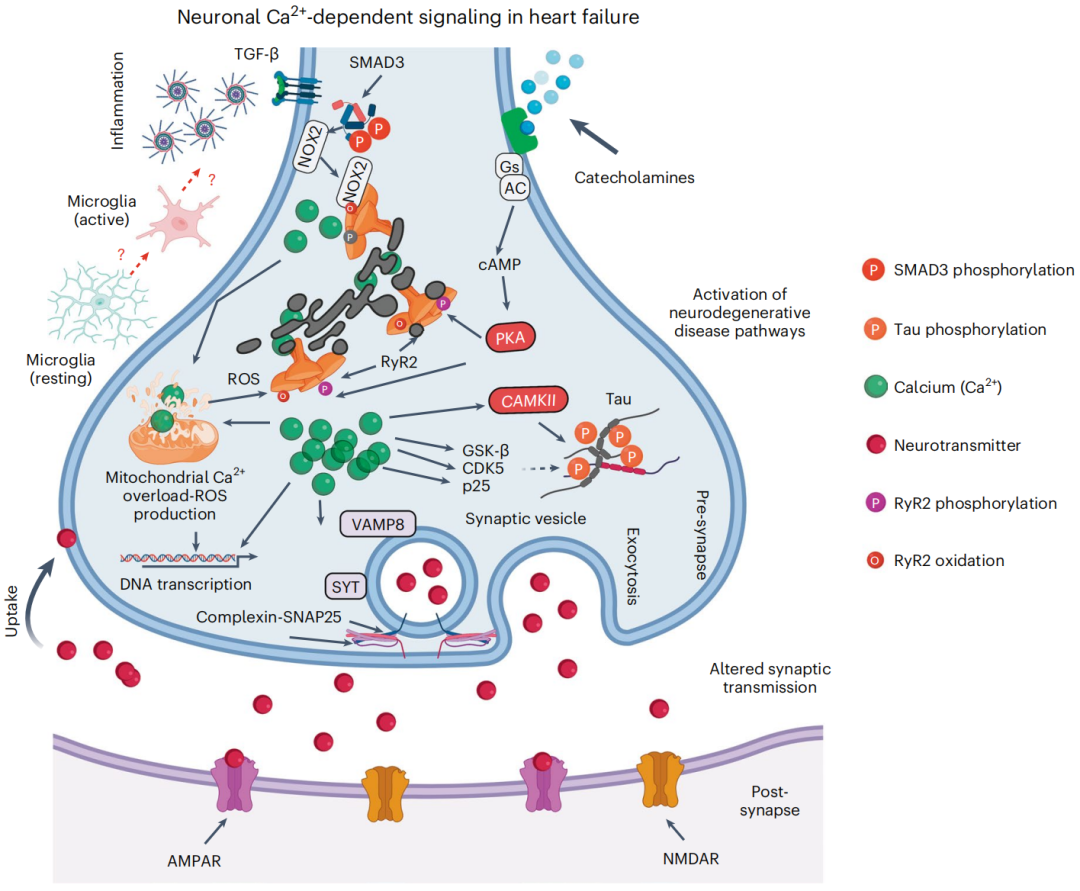 如此来看,对于心力衰竭患者来说,心脏和大脑中负责调控钙离子的通道都出现异常,心肌细胞和神经元中的钙离子水平失衡。