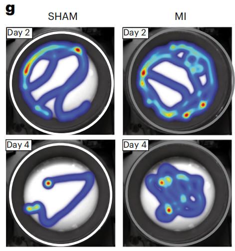 开放场实验、高架十字迷宫实验、水迷宫实验等测试结果则显示,心力衰竭小鼠表现出异常行为和记忆缺陷,包括探索行为、短期记忆和空间学习记忆的下降。从大脑的功能和能量代谢来看,心力衰竭小鼠的长时程增强作用(LTP)受到损害,即神经元之间传递信号的强度和持久性减弱,以及葡萄糖代谢受损(这是阿尔茨海默病诊断的临床标志)。