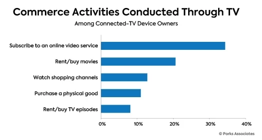 最常见的购买行为是与视频相关的数字购买,这些购买利用存储的支付凭证或将引导消费者通过移动链接来完成购买。