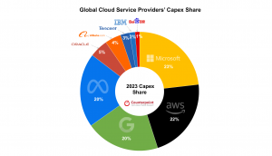 到2023年,微软和亚马逊(AWS)将占总资本支出的45%。美国超大规模企业将占全球总资本支出的91.9%。