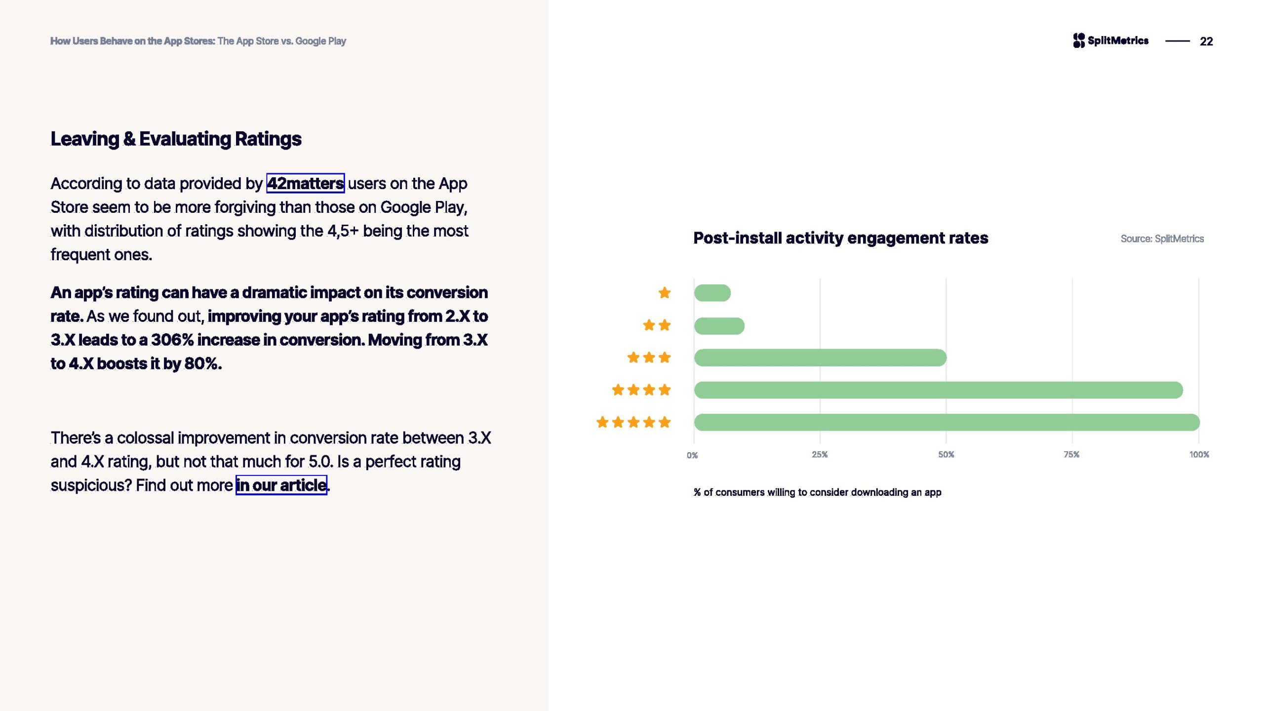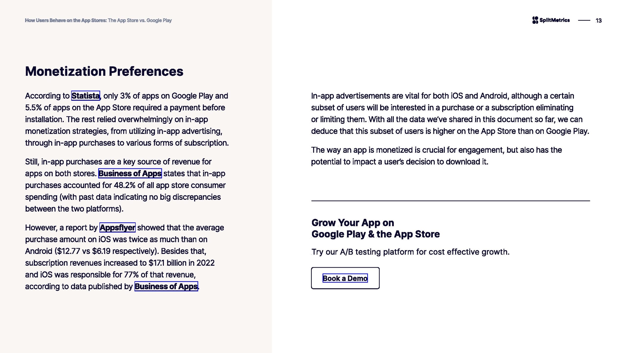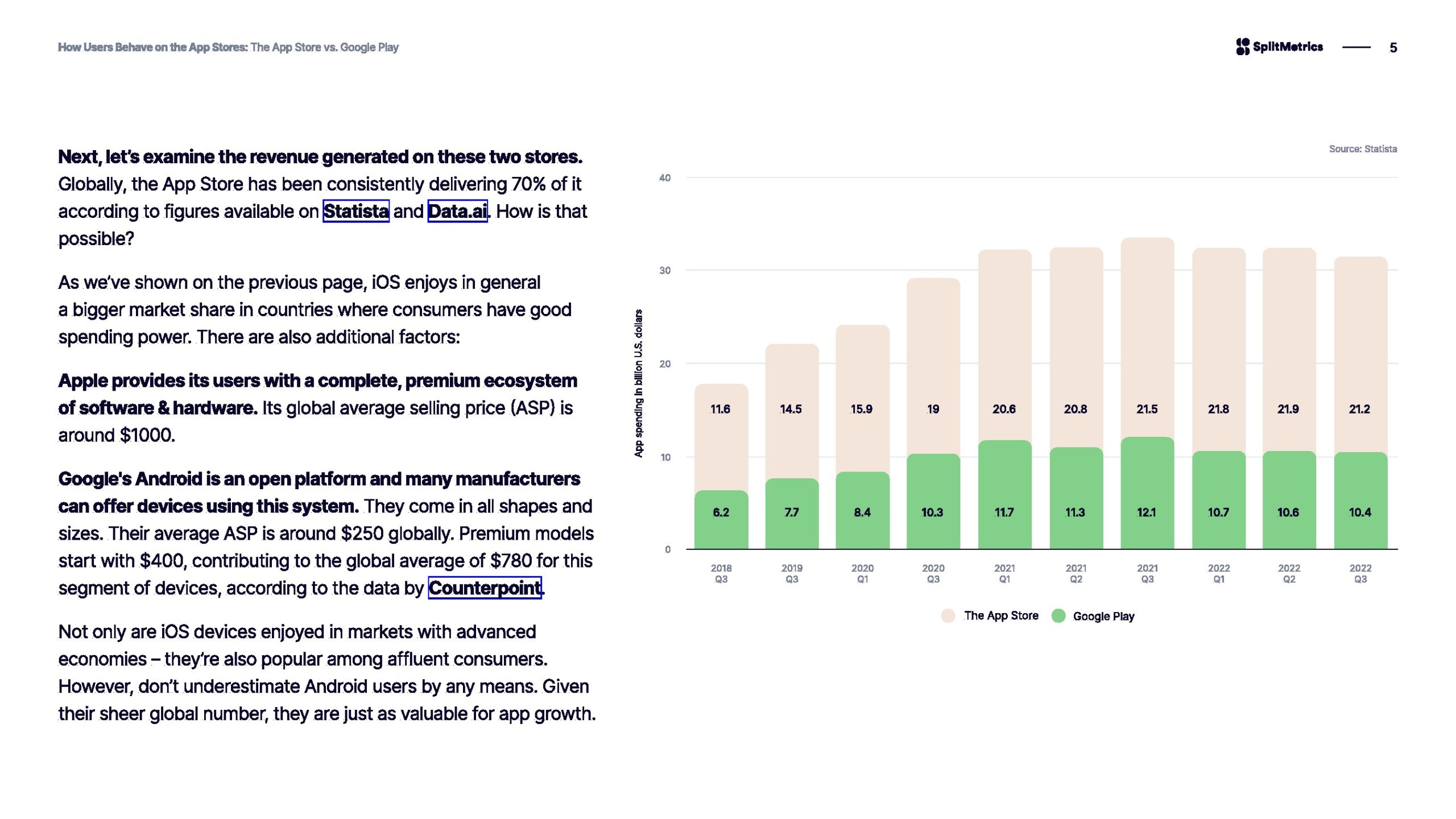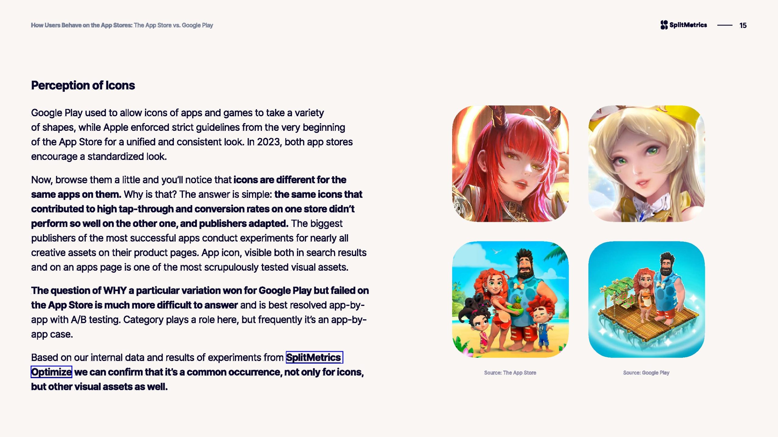 但它们是不同的,它们的用户也是不同的。例如,在App Store上表现良好的创意资产不一定会在Google Play上产生相同的结果,反之亦然。这些差异通常足以引起营销人员、设计师和开发者的注意。