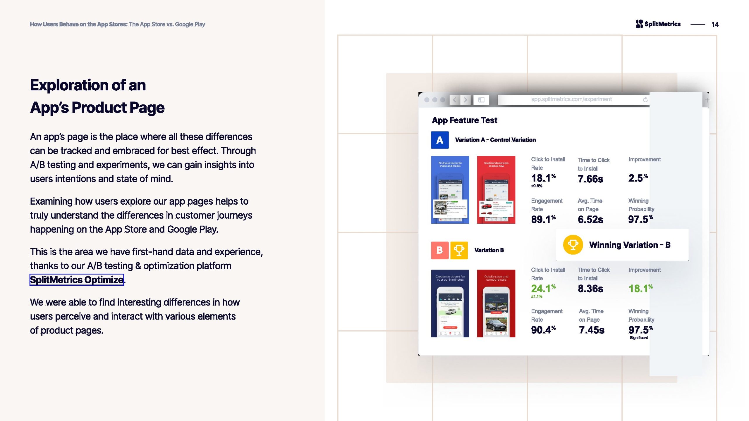为了回答这些问题,我们通过SplitMetrics Optimize平台进行了A/B测试。