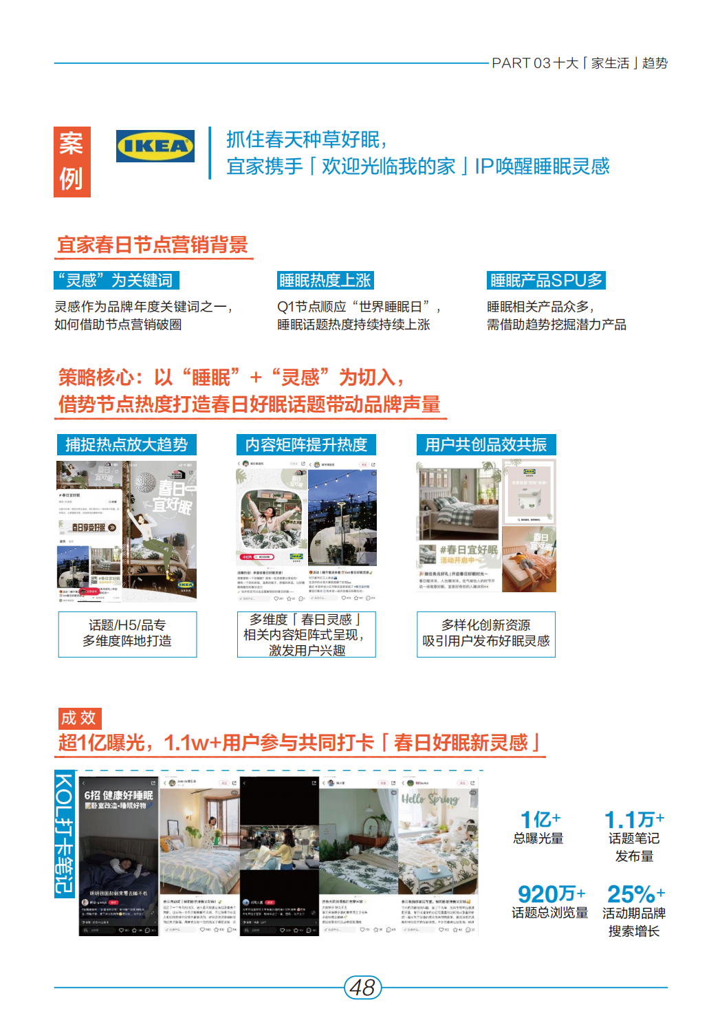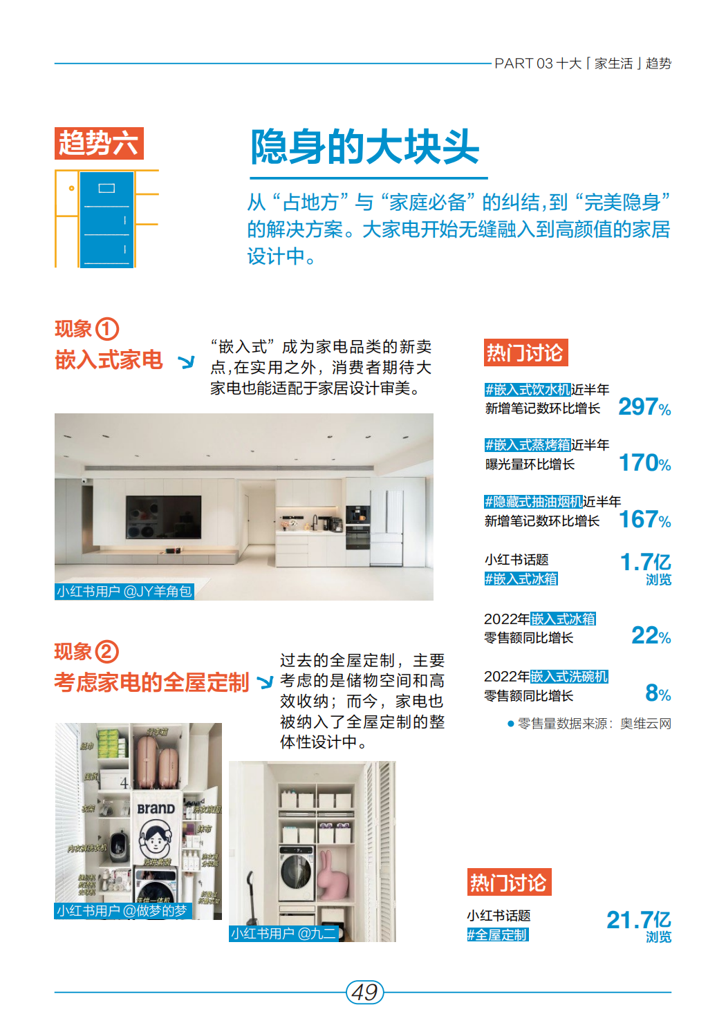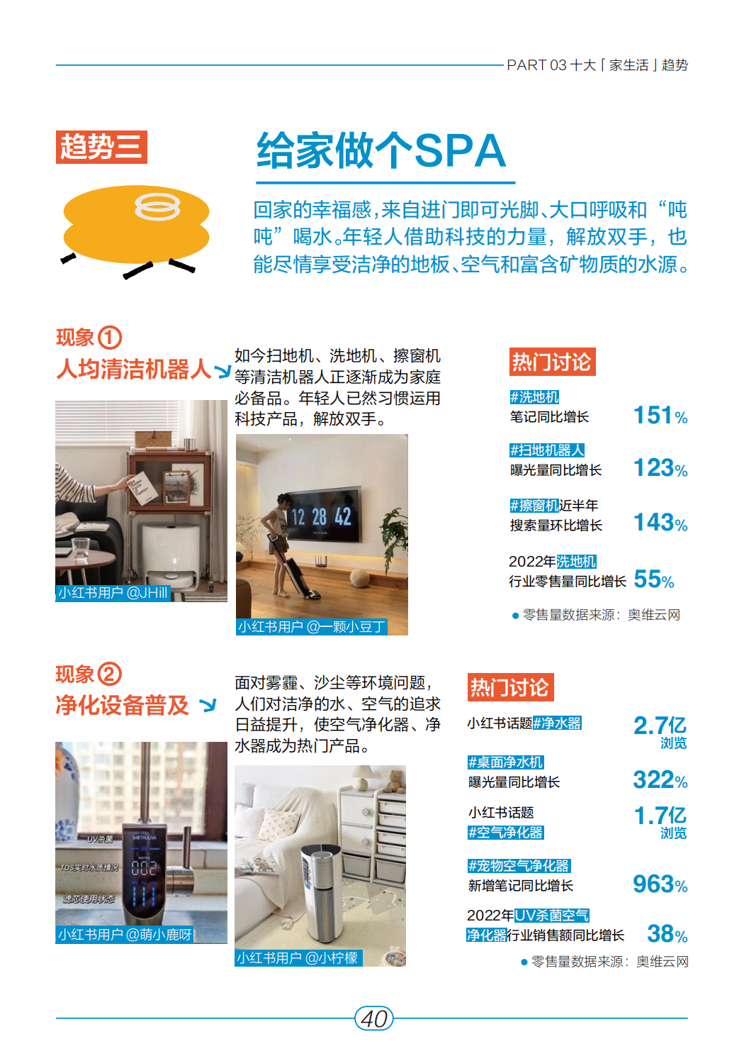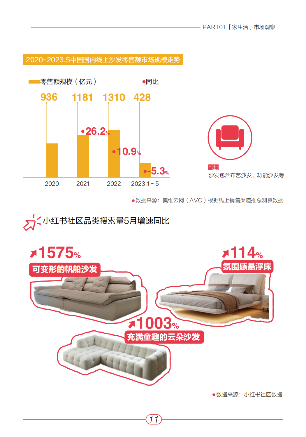 本报告总结的 2023 年度「家生活」趋势,结合了小红书社区对年轻人趋势的挖掘,1600 份覆盖 1-3 线 18-35 岁年轻人的线上定量问卷,新锐青年的「家生活」实践洞察,和学界专家及青年志、安邸、奥维云网等专业机构对青年家居文化与消费的深入研究,力求展现具备深度与广度、生动立体、又兼具行业启发性的「家生活」趋势报告。