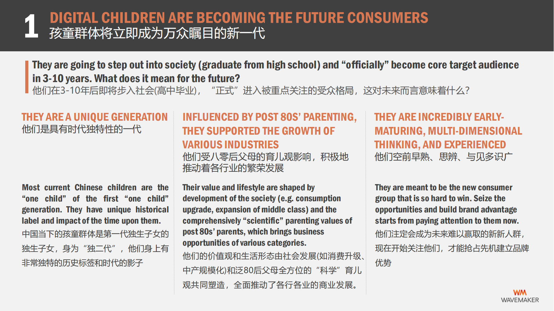 1、他们即将成为万众瞩目的新一代:他们在3-10年后即将步入社会(高中毕业),“正式”进入被重点关注的受众格局,这对未来而言意味着什么?