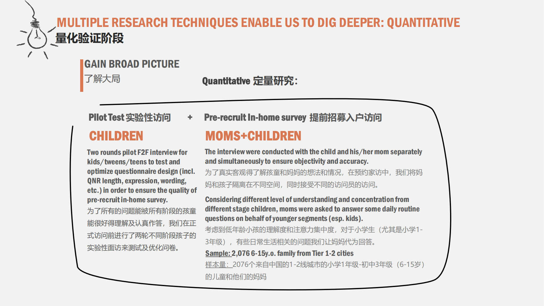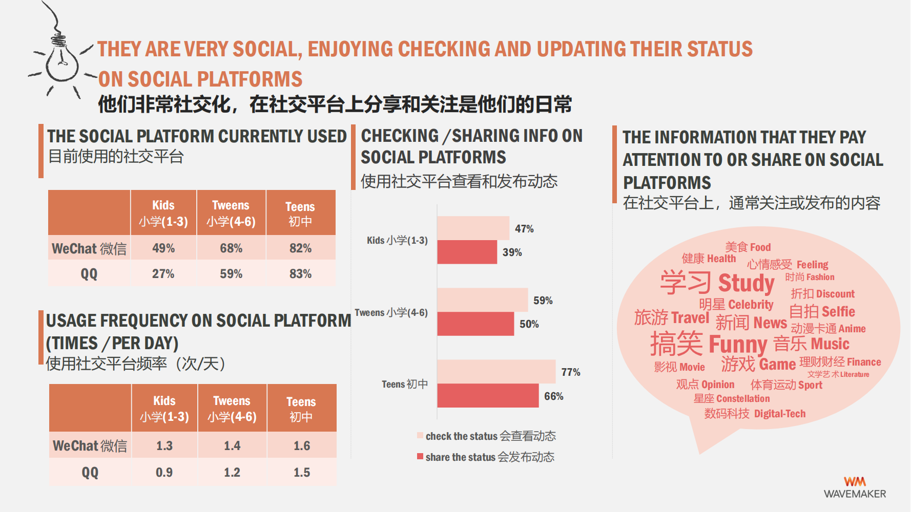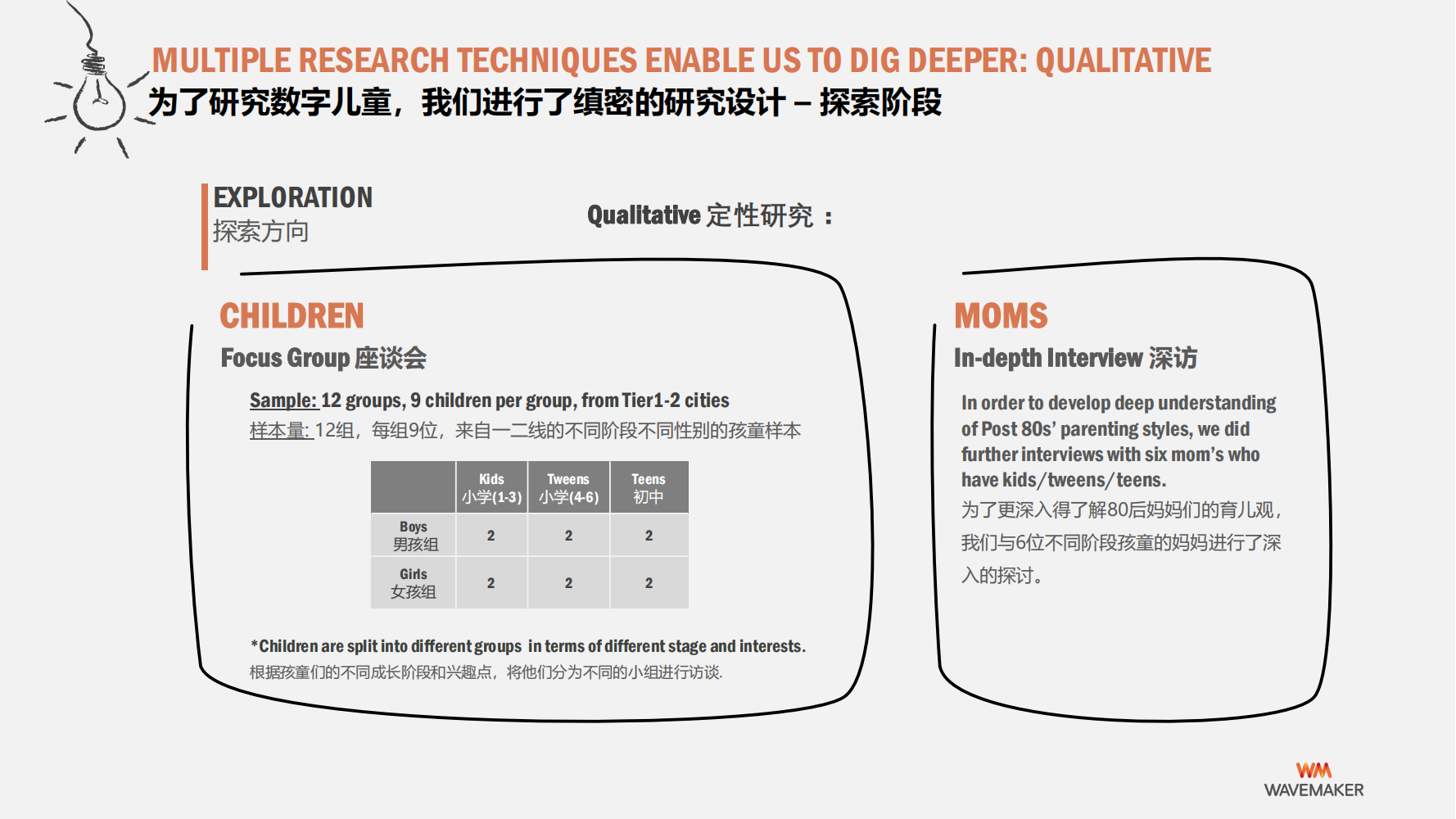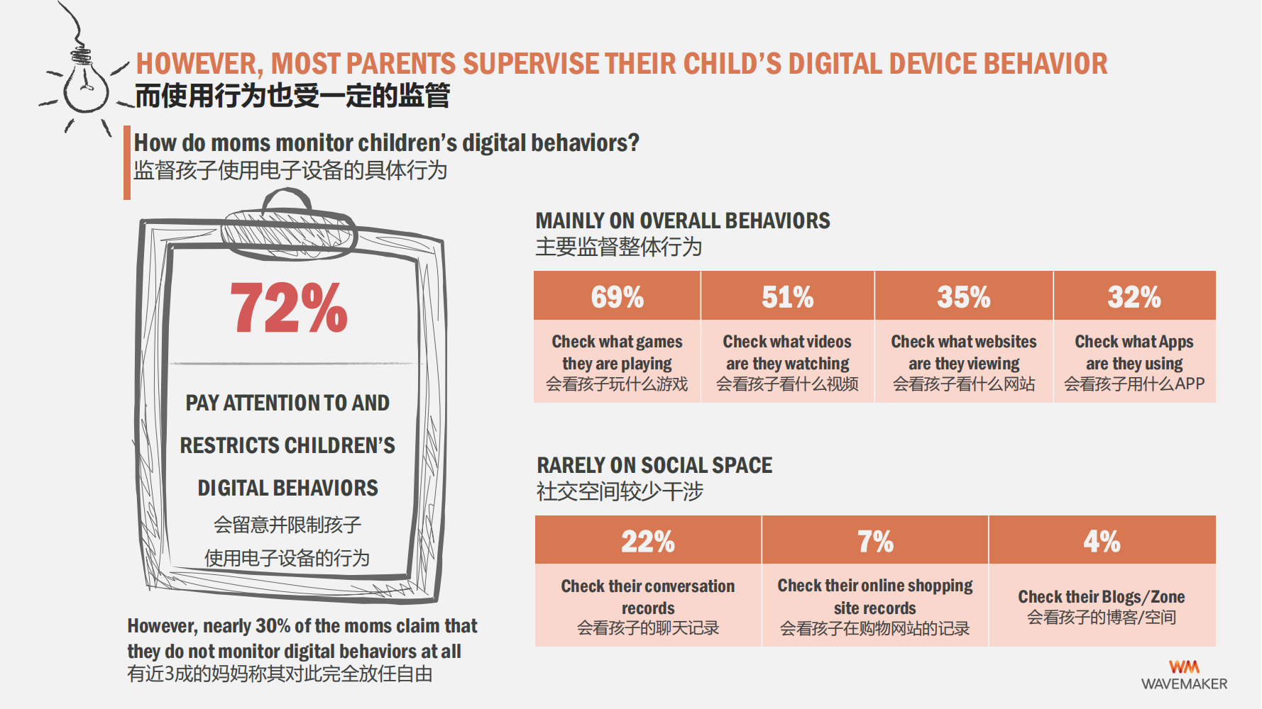 同时也要了解,孩童群体接触的渠道、内容与形式数字渠道的意义与挑战: 在中国,孩童是一个庞大的隐形互联网民群体,他们的数字设备接触度有目共睹;然而,因为他们中有较大比例没有专属的数字ID或身份,因而如何通过科技手段(如机器学习)更精准识别儿童用户是未来需要考虑的方向;