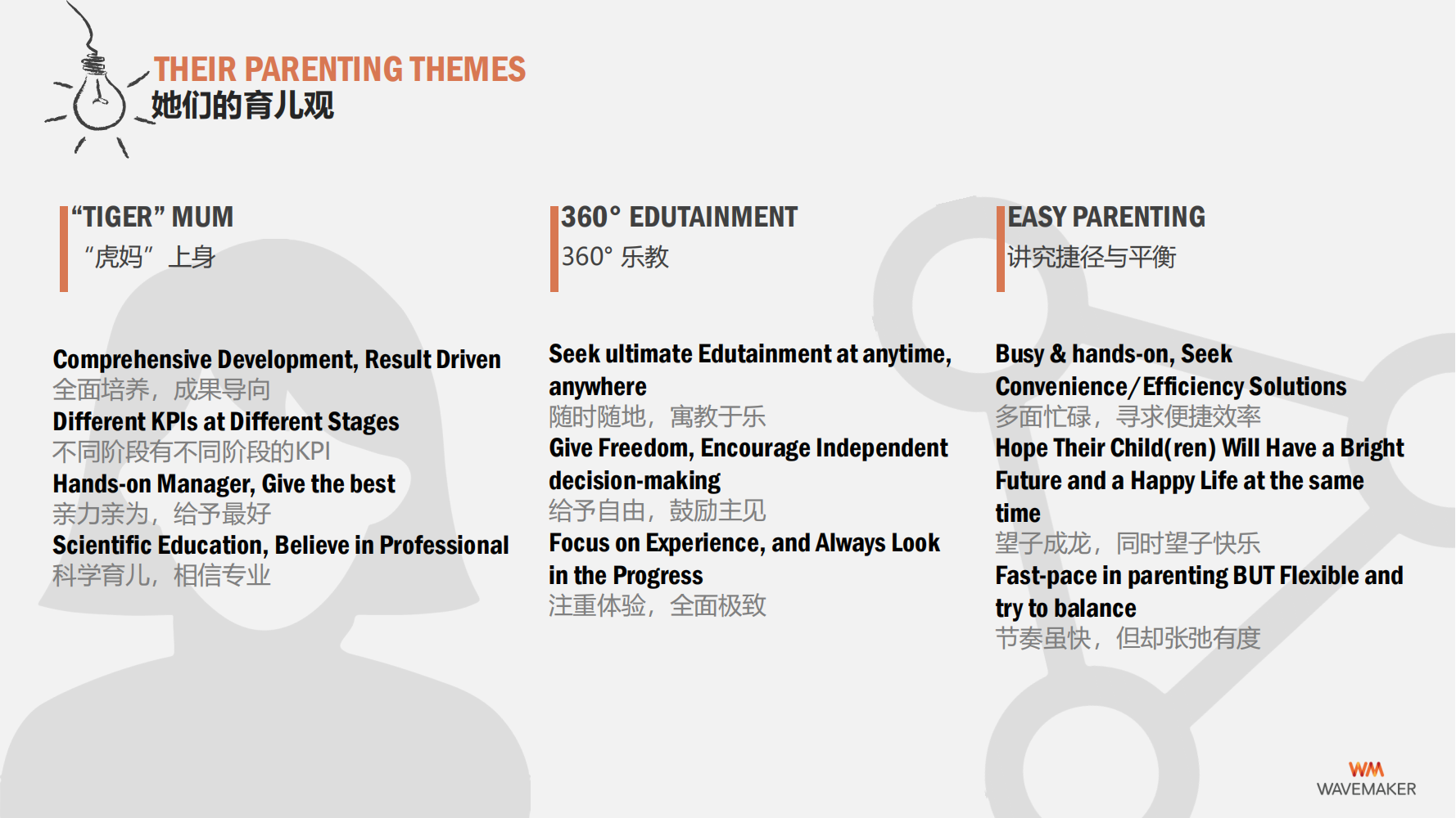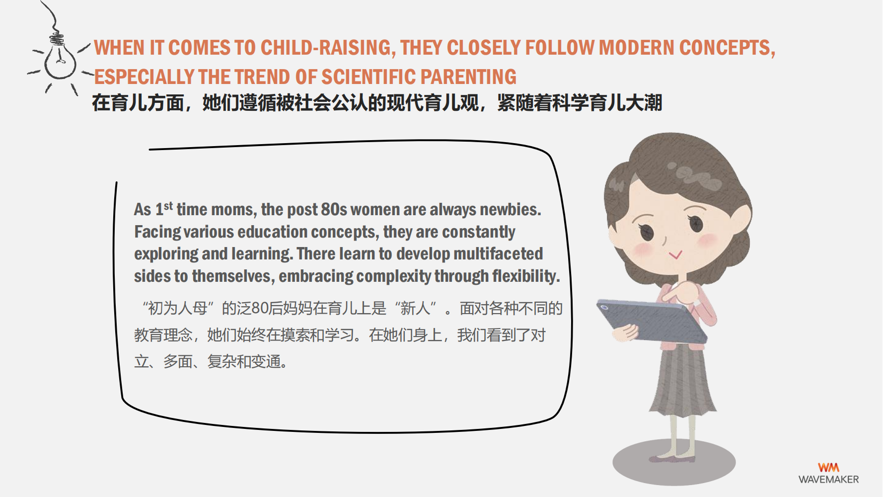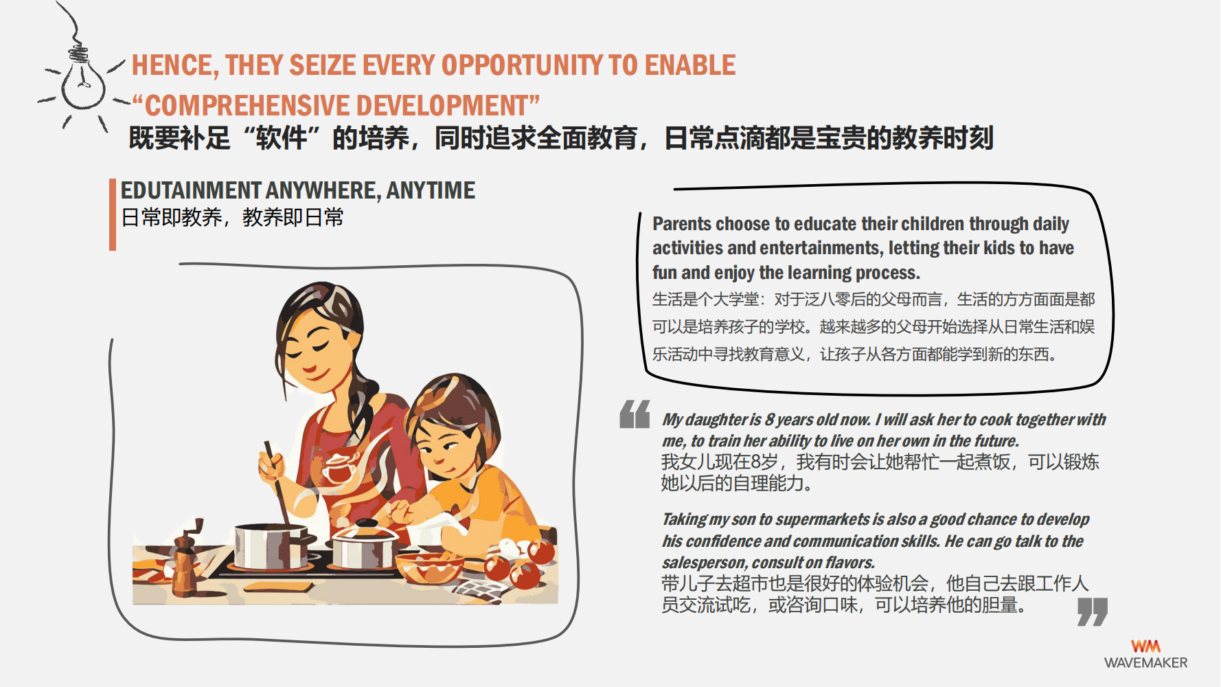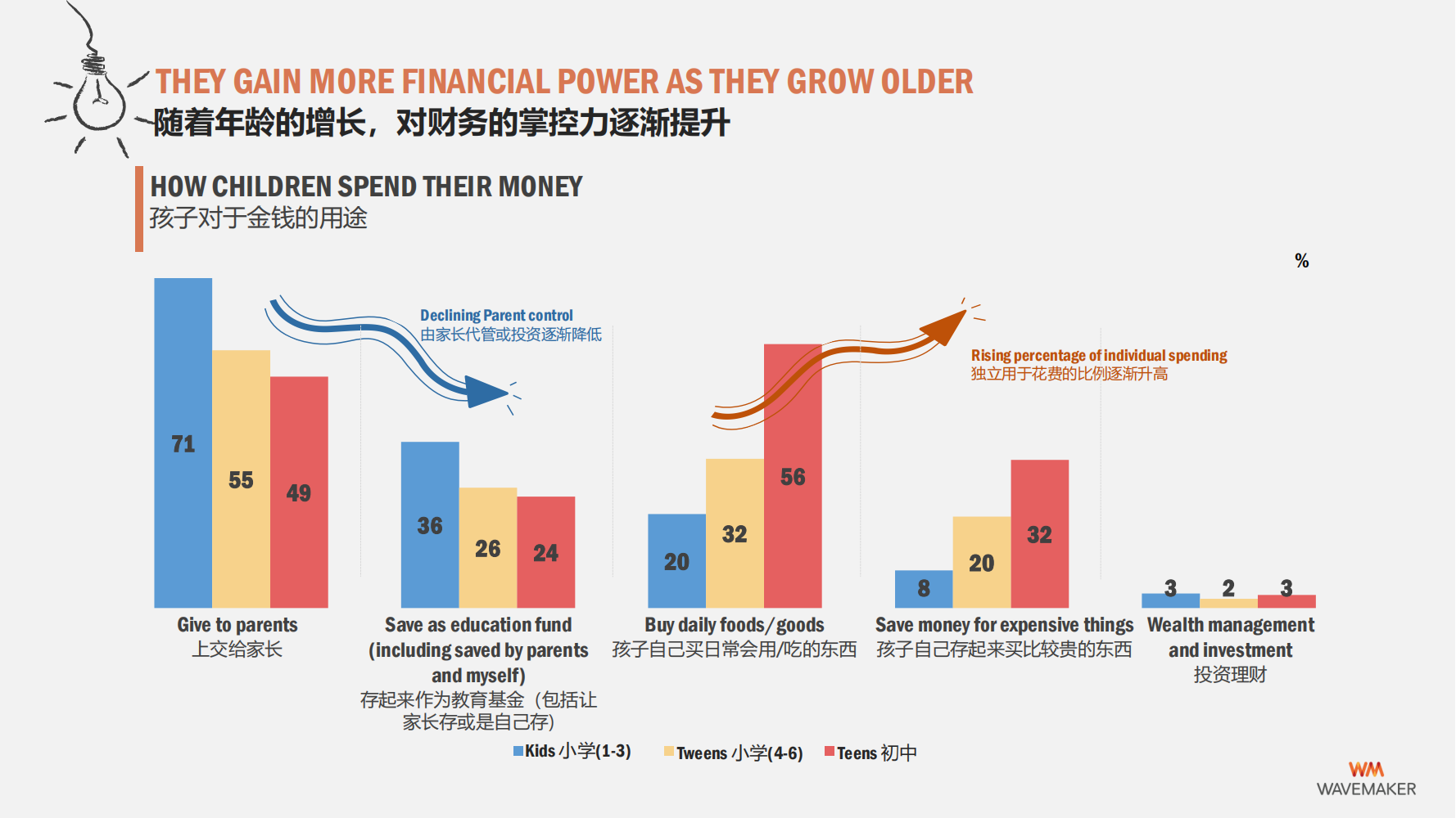 他们的“隐形”影响力: 受泛80后父母的育儿观影响,购物也是培养他们独立决策力的一种方式。他们已经对不同品类都有着不同程度的涉猎和影响,并使用父母的设备或账号来参与购物的过程;