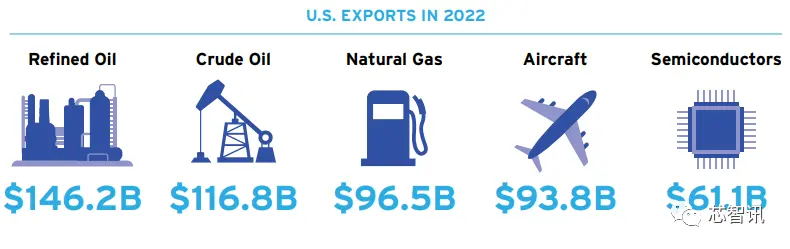根据SIA公布的数据显示,半导体是美国最大的出口产品之一。