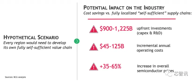 但是,各国如果想要建立完全自给自足的本地半导体供应链也是不太现实的。根据SIA此前的一份报告显示,假设每个地区的本地供应链完全自给自足,则需要至少1万亿美元的增量前期投资,并导致半导体价格整体上涨35%至65%,最终导致消费者的电子设备成本上升。因此,世界各国政府应该就其加强芯片行业的计划交换信息,以提高效率并避免裁员。