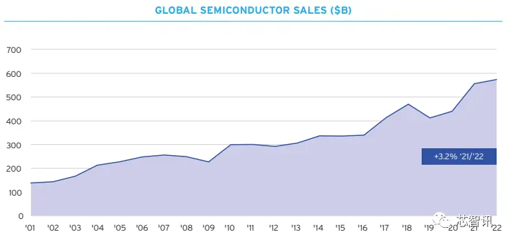 继2021年5559亿美元的强劲销售额之后,2022年全球半导体销售额增长3.2%,达到5741亿美元。半导体销售额在2022年上半年表现强劲,此前在疫情的大部分时间里都经历了一段巨大的增长期。但通货膨胀、消费者支出减少和半导体需求减弱等宏观经济因素导致2022年下半年销售额下降。据世界半导体贸易统计机构WSTS估计,2023年全球半导体行业销售额将降至5150亿美元,同比下降10%。然而,当前的短期低迷并没有改变这一现实,即这项基础技术的长期增长前景仍然非常有希望。