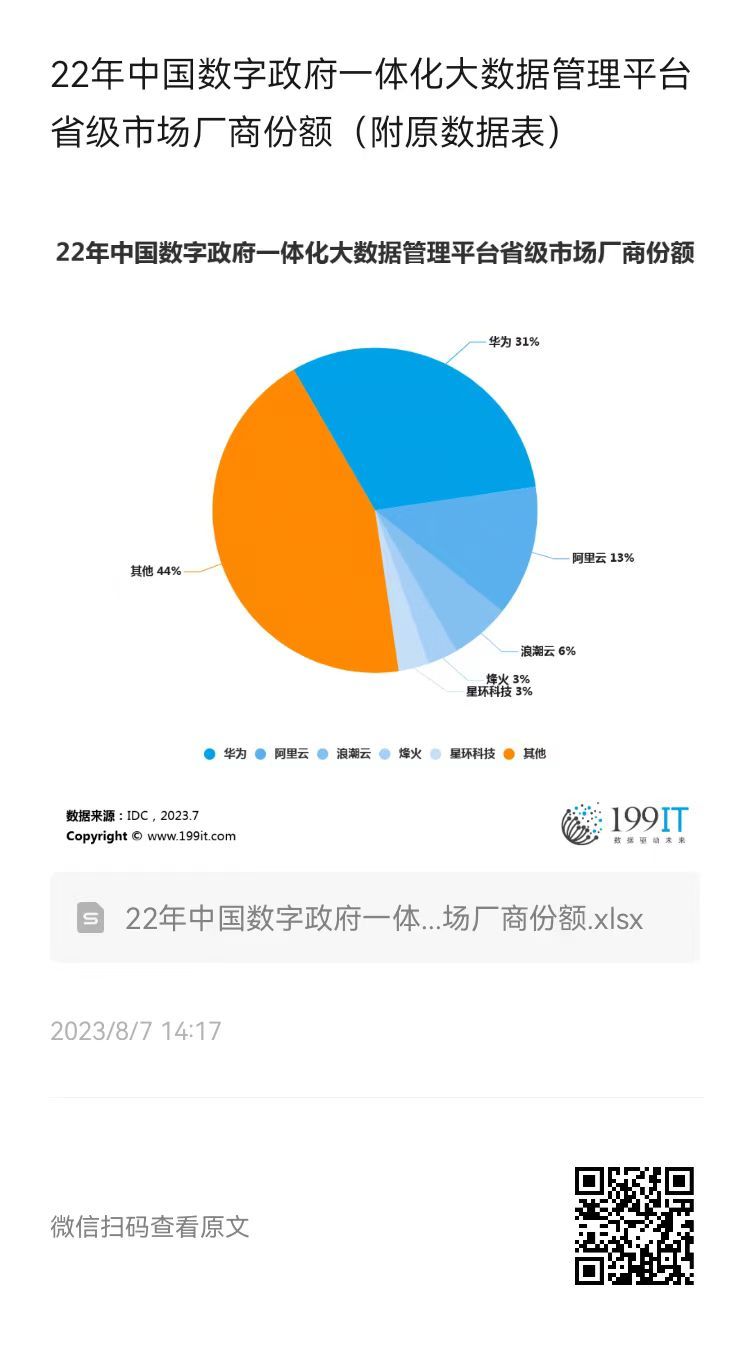 - 2022年中国主要数字政府一体化大数据管理平台市场份额(附原数据表)
