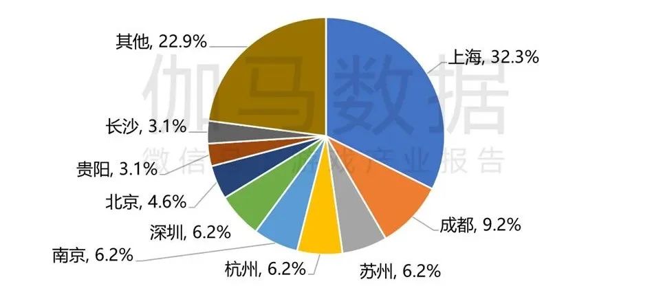 2023年1-6月举办的线下赛事中,上海举办的电子竞技赛事数量最多,占全国赛事数量的32.3%。成都、苏州举办的电子竞技赛事数量占比分别为9.2%、6.2%。