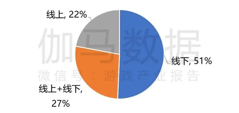 2023年1-6月举办的电竞赛事中,51%的赛事全程线下举办,27%的赛事采用线上线下结合的形式举办,另有22%的赛事线上举办。