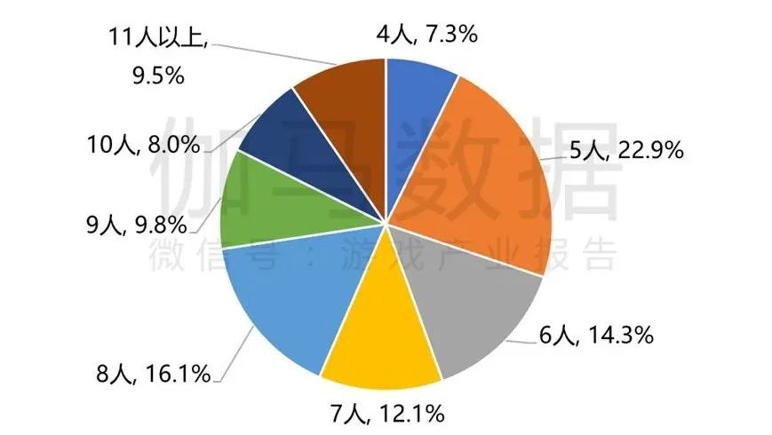 从参赛选手数量角度看,5人、8人、6人参赛的俱乐部数量占比分别达22.9%、 16.1%和14.3%,是最常见的三种俱乐部参赛选手规格。